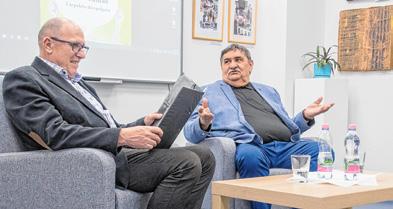 Lassu Tamás őszintén mesélt életéről, s Várpalotához való kötődéséről Pócsik Józsefnek és a közönségnek FOTÓ: RUMPLER IMRE