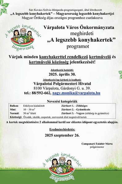 Várpalota Város Önkormányzata értesíti a Tisztelt Szülőket, hogy az óvodás korúak beíratása, valamint a bölcsődei felvételi igény bejelentése a következő időpontokban és az alábbi címeken történik: 2025. május 05-én (hétfő) 13.00-16.00 óráig 2025. május 06-án (kedd) 08.00-16.00 óráig 2025. május 07-én (szerda) 08.00-13.00 óráig