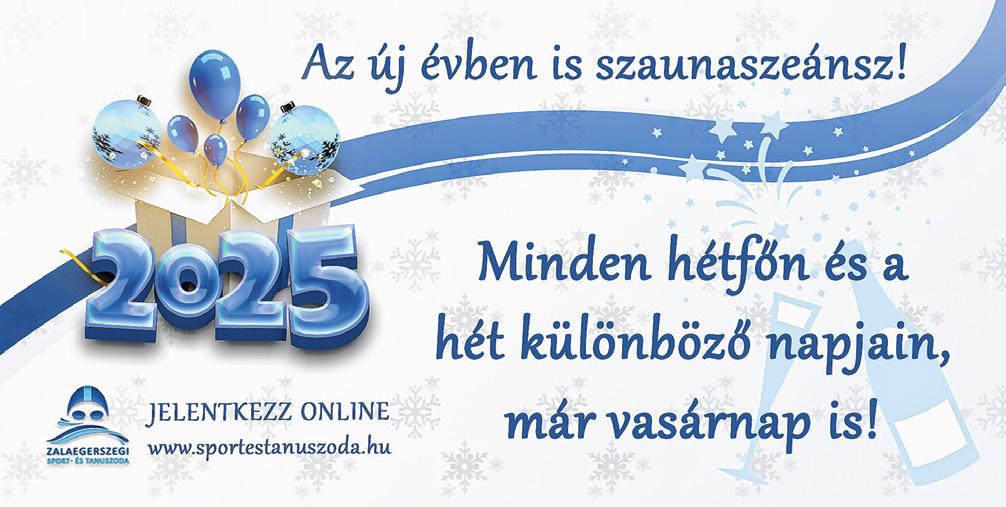 Felelős kiadó: Dr. Kovács Juliánna ügyvezető igazgató Kiadja: Szuperinfó Magyarország Média Kiadói Kft., 8200 Veszprém, Házgyári út 12. Szerkeszti: a szerkesztőbizottság Szerkesztőség címe: 8900 Zalaegerszeg, Kossuth utca 45–49. e-mail: zalaegerszegi7nap@maraton.hu Nyomdai munkák: Mediaworks Hungary Zrt., Megrendelés száma: 15/2025 • A lap ingyenes • Megjelenik 26 000 példányban. Terjeszti a MédiaLOG-DMHM Zrt. • A Szerkesztőség fenntartja magának a jogot az olvasói levelek tartalmának szerkesztésére és közlésére. A Szuperinfó Magyarország Média Kiadói Kft. politikai hirdetéseket nem fogad be.