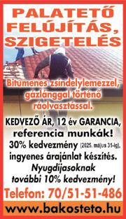 Ácsmunka, komplett tetőkészítés, tetőjavítás, bádogosmunka, Lindab-lemezelés, ereszcsatornázás, széldeszkázás, tetőszigetelés, beázás-javítás, kúpkikenés. Kedvezmény 30% 2025.05.31-ig. 06-30550-0768.