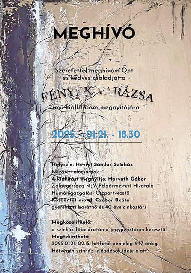 Felelős kiadó: Dr. Kovács Juliánna ügyvezető igazgató Kiadja: Szuperinfó Magyarország Média Kiadói Kft., 8200 Veszprém, Házgyári út 12. Felelős szerkesztő: Sárvári Viktória Szerkesztőség címe: 8900 Zalaegerszeg, Kossuth utca 45–49. e-mail: zalaegerszegi7nap@maraton.hu Nyomdai munkák: Mediaworks Hungary Zrt., Megrendelés száma: 2/2025 • A lap ingyenes • Megjelenik 26 000 példányban. Terjeszti a MédiaLOG-DMHM Zrt. • A Szerkesztőség fenntartja magának a jogot az olvasói levelek tartalmának szerkesztésére és közlésére. A Szuperinfó Magyarország Média Kiadói Kft. politikai hirdetéseket nem fogad be.