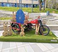Már napokkal korábban izgalmat keltett a központ elé kiállított, színpompás Nyuszi-járgány, amely nemcsak a gyermekek, de a fotózni vágyó családok kedvence is lett. A bájos jármű remek díszletként szolgált ugyanis a közös képekhez. Az április 12-i húsvétváró rendezvényen változatos és szórakoztató programok várták a látogatókat. A kisebbek linzert süthettek, kézműves foglalkozásokon