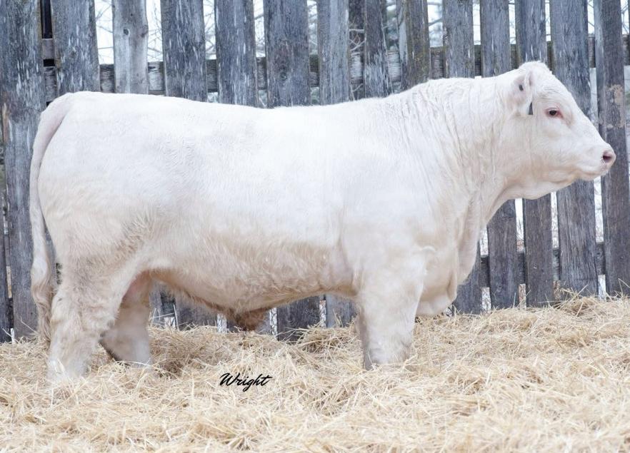 302L is a calving ease bull that will still give you the performance that we expect when using a Charolais herd sire. He has enough frame to breed mature cows and will work great on a set of Angus/Simmental cows.