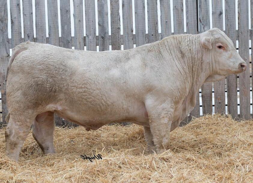 Great cross. For those guys wanting to try a Charolais bull, Laser is a great choice especially for an Angus based herd. A choice birth weight, and ample growth puts some punch into the calves, and ultimately, pounds on the scale. The Angus cows will poll all the calves, and the Char cross will add the extra pounds and extra premiums paid for your calf crop. He is built right to work on any herd. Sired by a new AI sire , Backwater Jack who’s offspring have really dazzled the show ring last fall. We are confident that if you aren’t already hooked on Charolais, Laser will win you over. Top 25% birth weight.