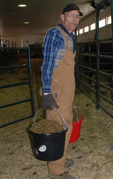 Bulls are grown out slowly so they will last for you. This year they are being fed a mixture of corn/soft white white wheat silage, hay and oats. They are started on this ration in September. After the bull sale they are taken slowly off of the grain, so as to get them ready to transition to grass. Twoyear-old bulls are lightly backgrounded the first winter and go to grass until September. Then they are brought home and started on their sale ration.