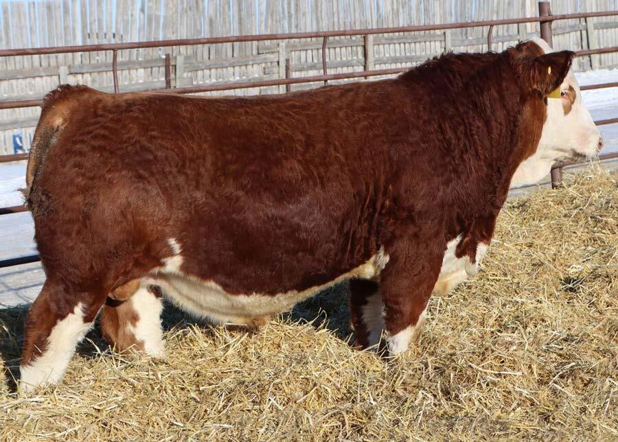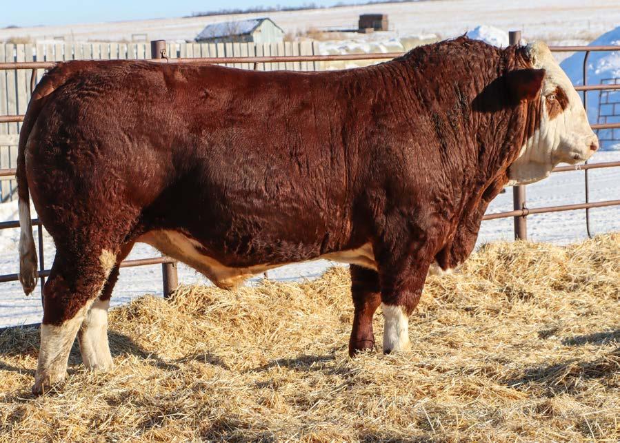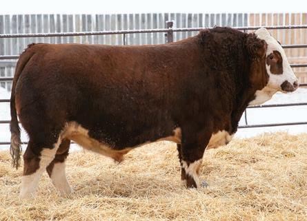 Solid built baldy bull. Length of spine and dam is as sound as they come.