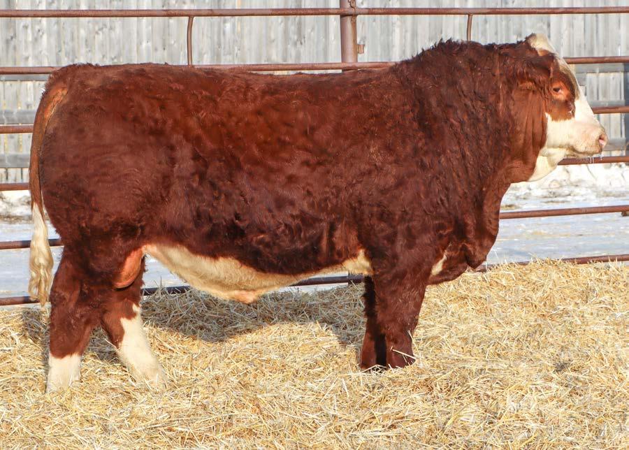 Extra frame and overall mass on this LW son. Heavy hair coat to help in these prairie winters and excellent testicular development from an extremely early stage.