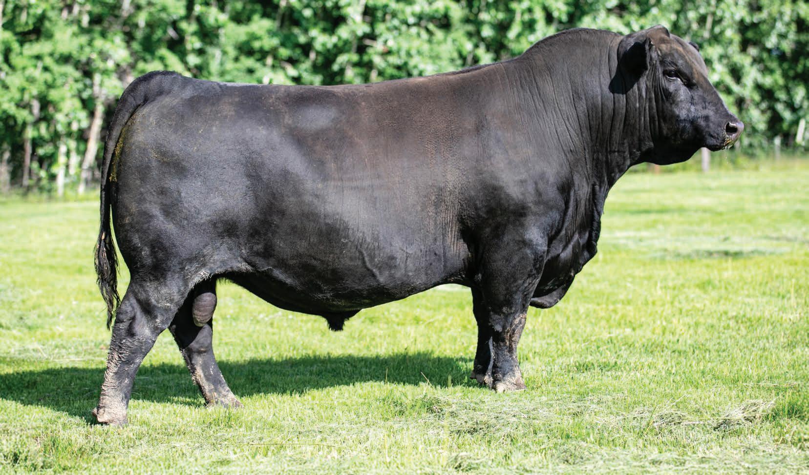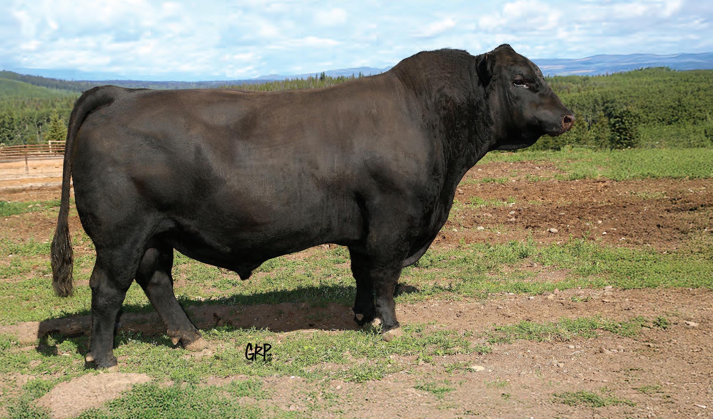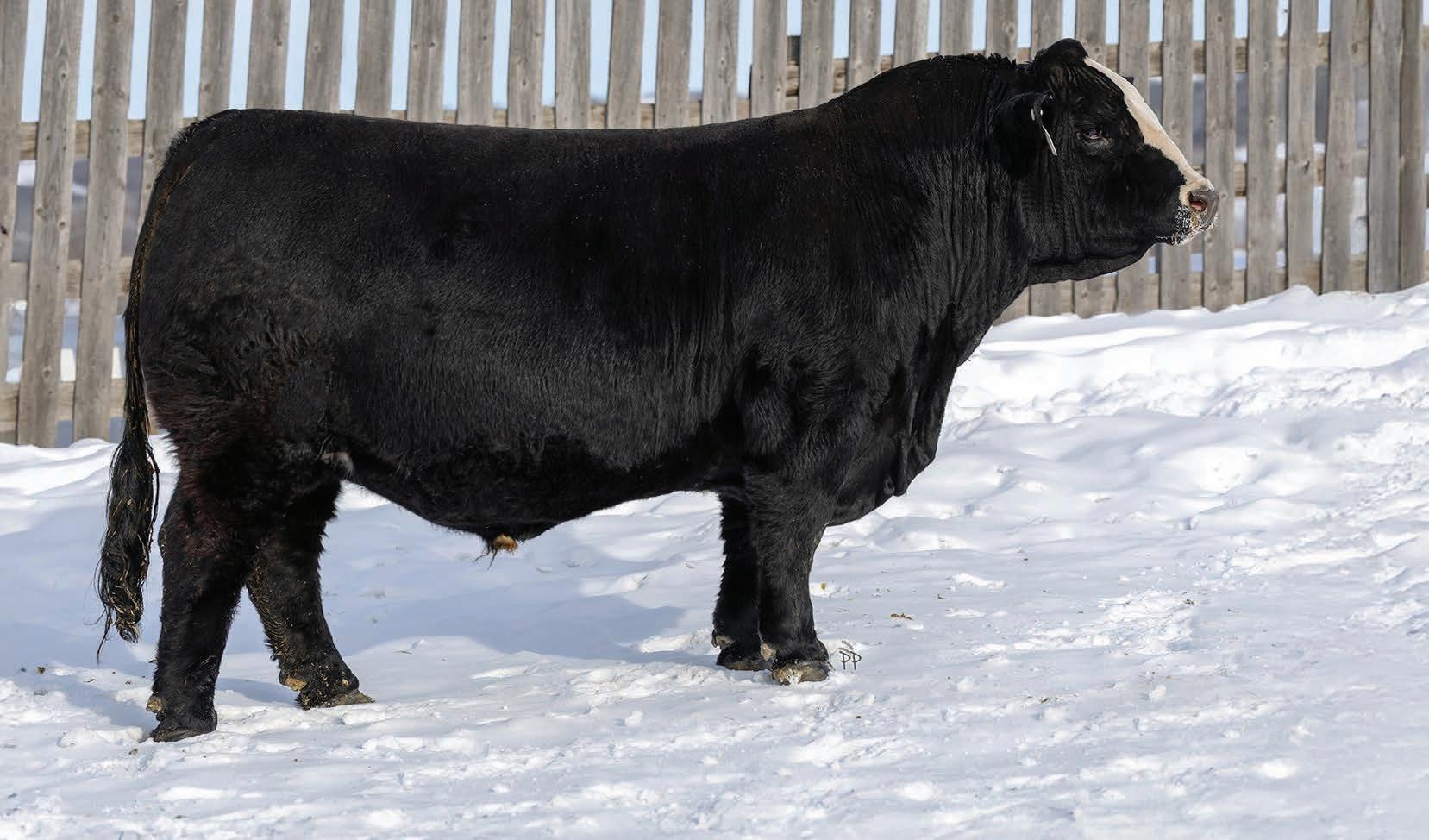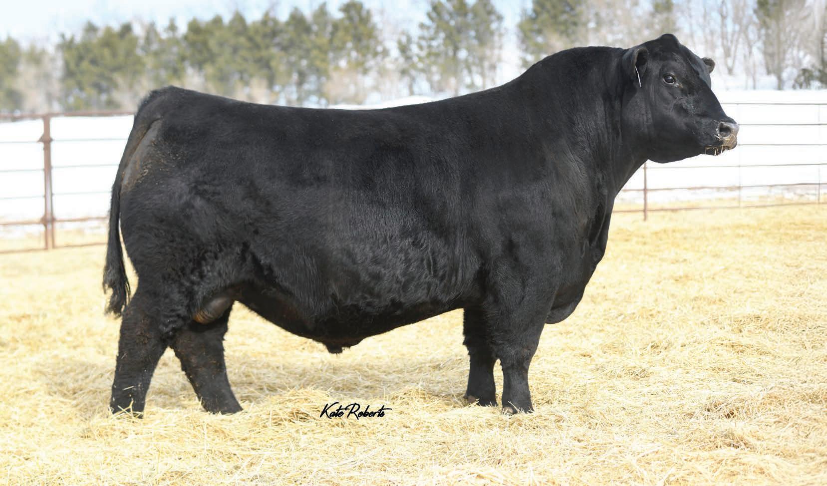 Rossburn is the man amongst any boys that he has been compared to. With nearly a perfect mathematical EPD chart and a modest actual BW, Rossburn is the bull to make one cross and enhance anyone’s program. Once you walk around this bad boy you’ll notice his massive outline, huge rear end, big strong feet with an enormous big back. We feel stature and frame is in and is here to stay and Rossburn is the man to elevate those credentials. His famed mother only adds to this meat machine as she is one of the most notable cows to ever garnish a registration paper in North America. Furthermore his popular sire offers strong foot structure, frame and links in that calving ease trait to solidify Rossburn’s checklist who has been specifically held for this sale since August as he has been a stand out since birth. An incredible creature we are proud of and look forward to his influence throughout the breed.