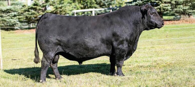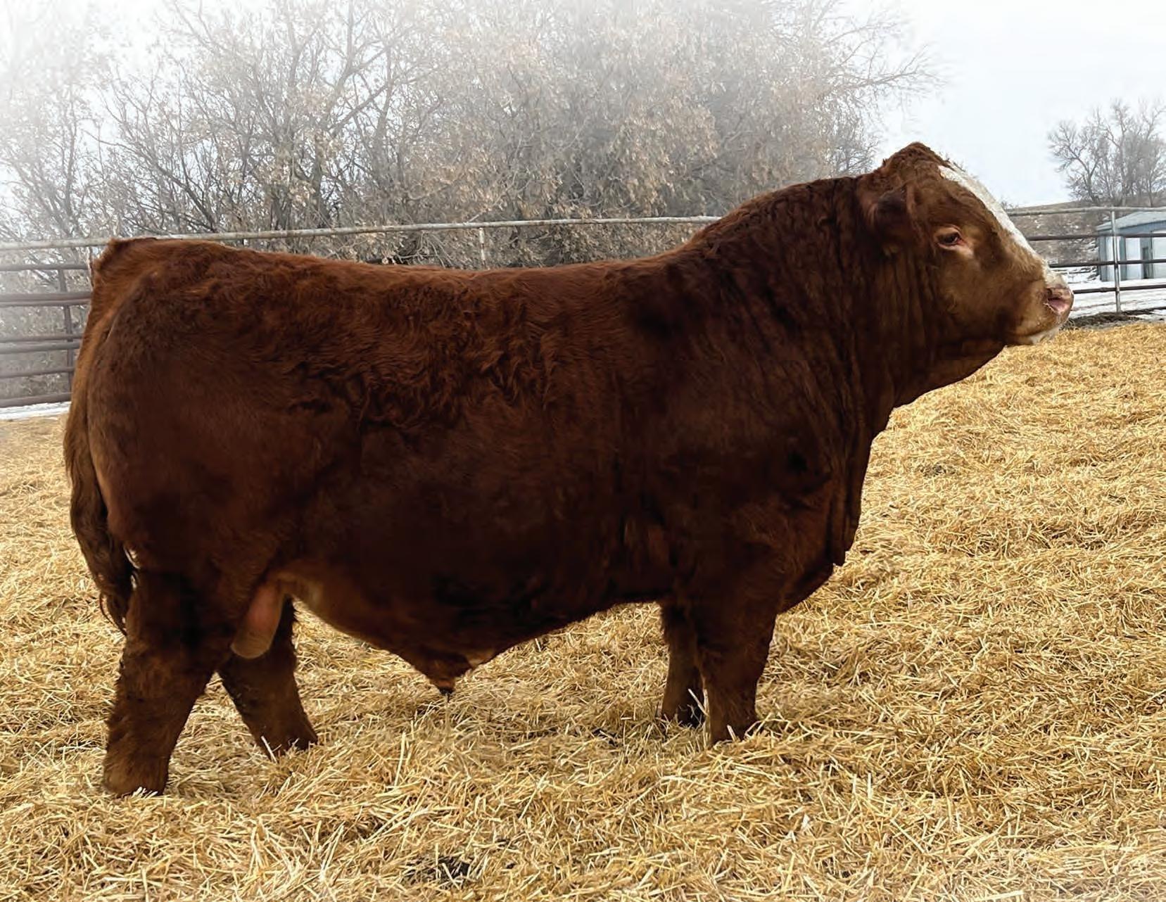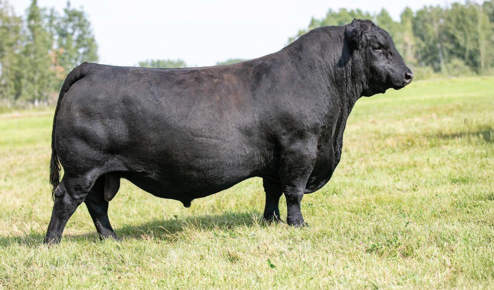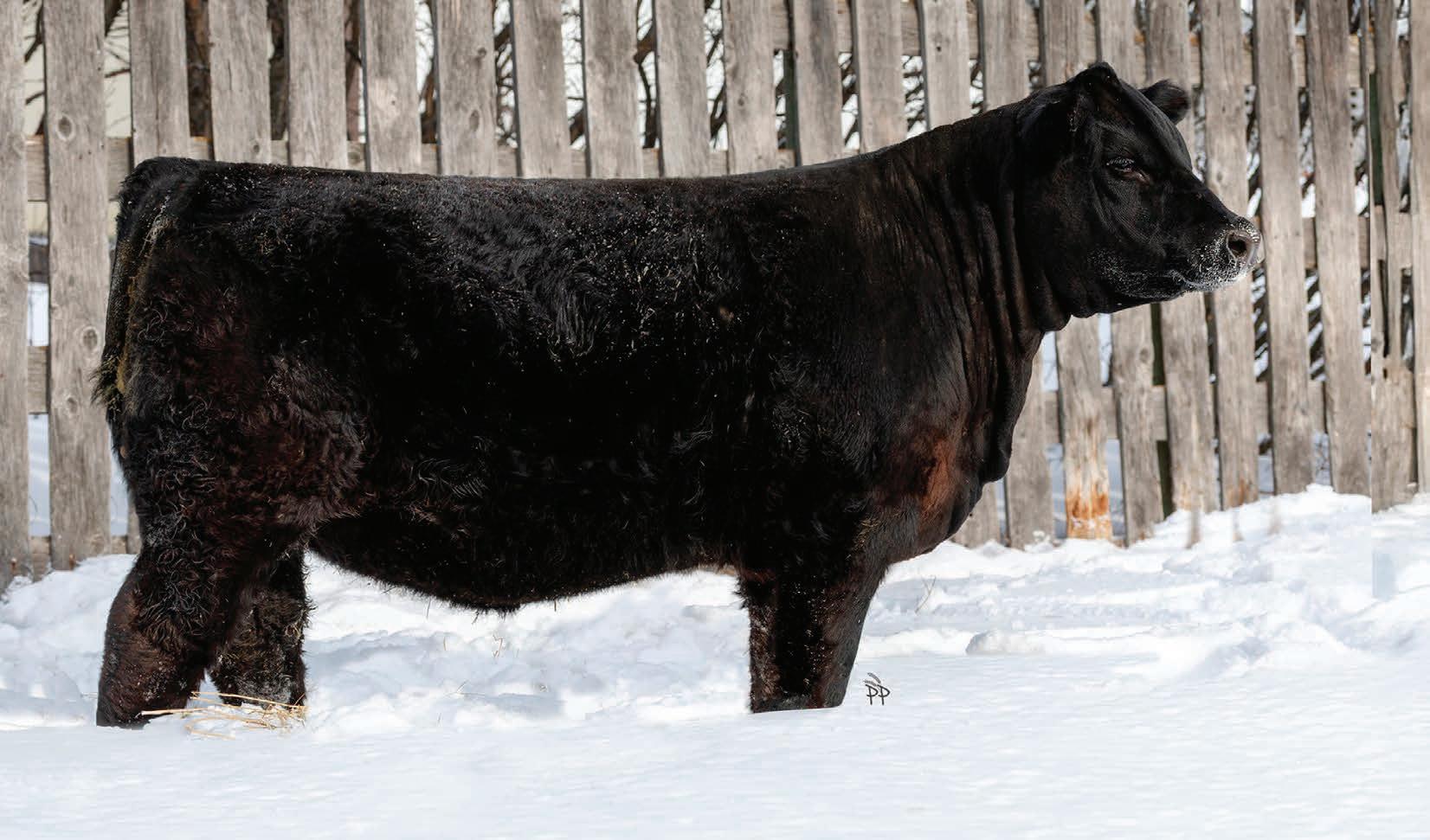 Rossburn is the man amongst any boys that he has been compared to. With nearly a perfect mathematical EPD chart and a modest actual BW, Rossburn is the bull to make one cross and enhance anyone’s program. Once you walk around this bad boy you’ll notice his massive outline, huge rear end, big strong feet with an enormous big back. We feel stature and frame is in and is here to stay and Rossburn is the man to elevate those credentials. His famed mother only adds to this meat machine as she is one of the most notable cows to ever garnish a registration paper in North America. Furthermore his popular sire offers strong foot structure, frame and links in that calving ease trait to solidify Rossburn’s checklist who has been specifically held for this sale since August as he has been a stand out since birth. An incredible creature we are proud of and look forward to his influence throughout the breed.