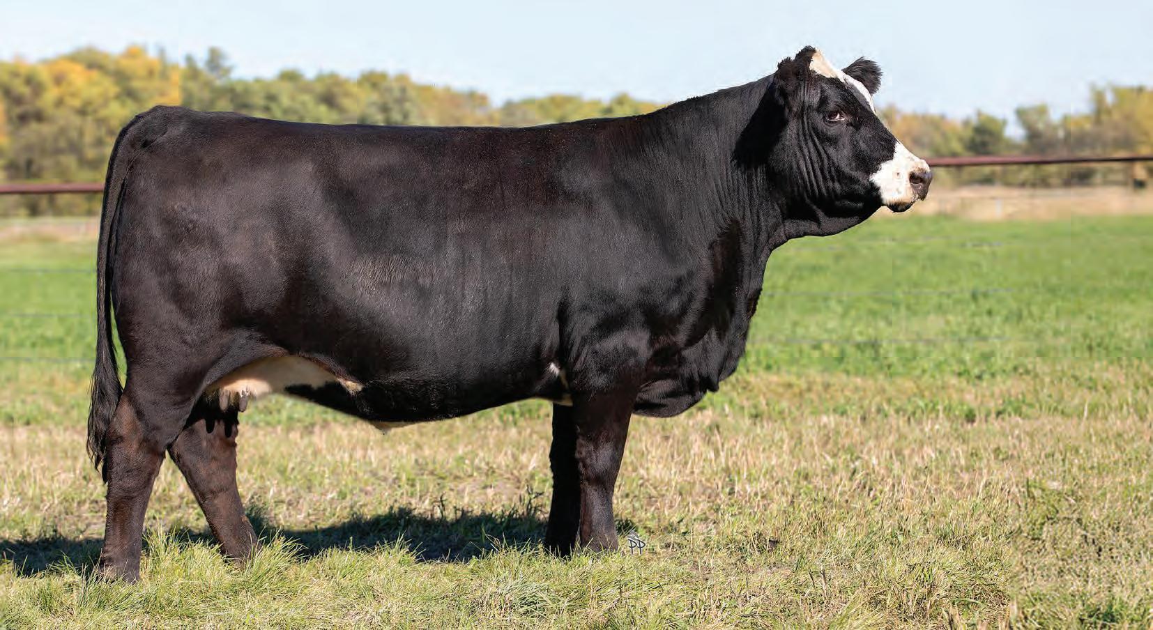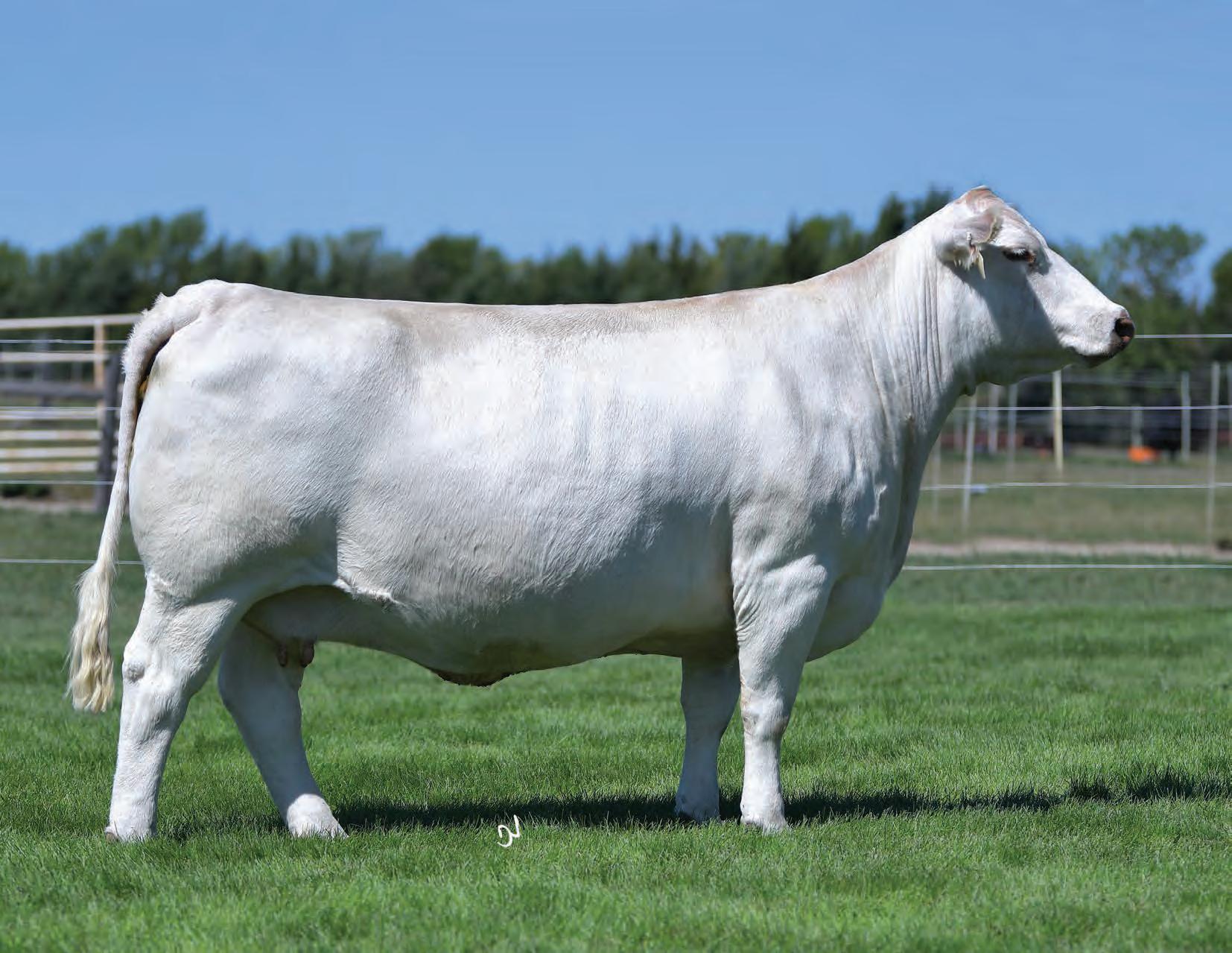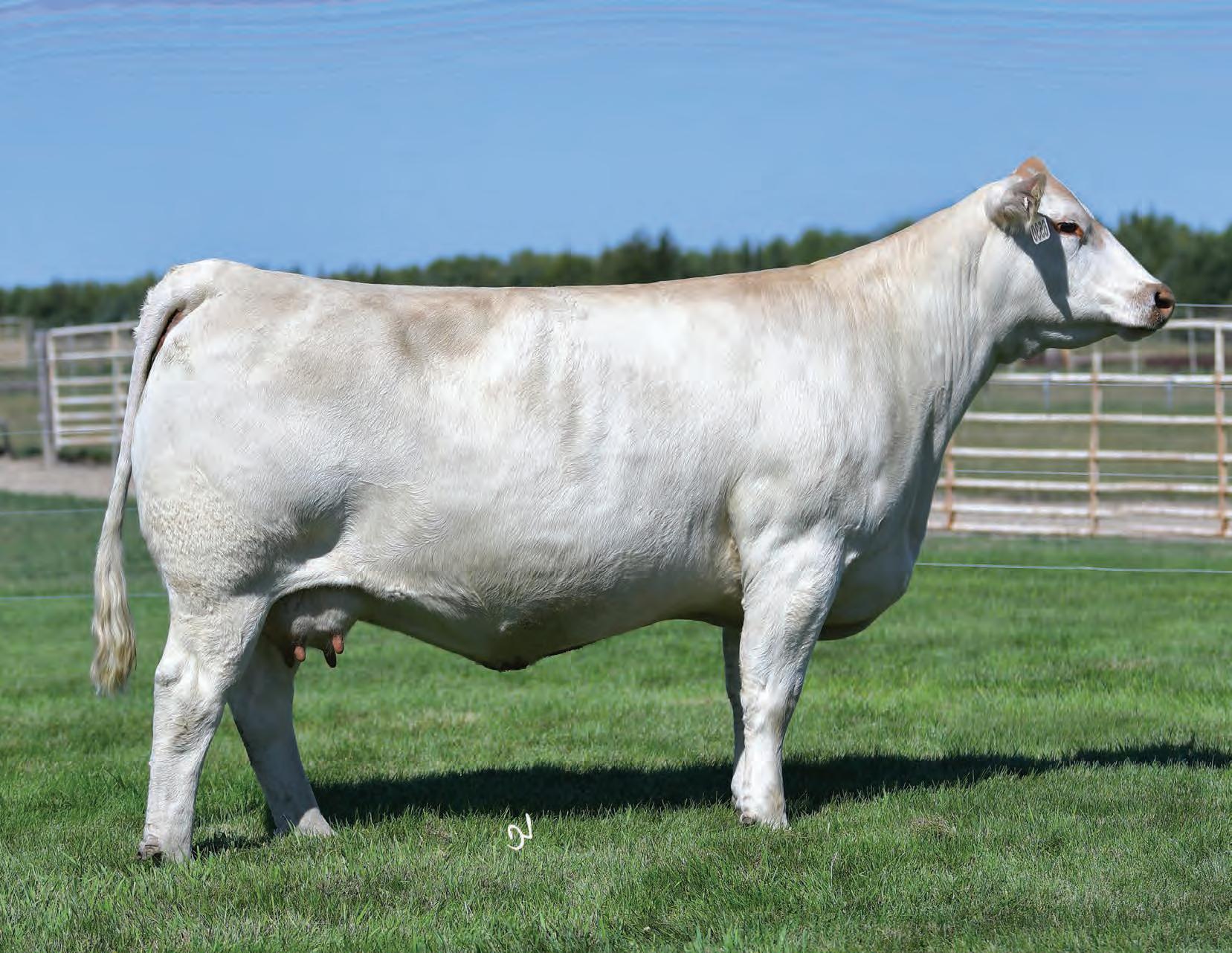 It’s not often you find a direct 157C daughter — let alone one with a negative BW EPD. Flawless in her udder attachment and teat placement, she also brings a calm, easy-going attitude. In today’s rising cattle market and evolving industry demands, 50M checks all the boxes. With pedigree, phenotype, and genetic ability stacked in her favour, she is destined for the donor pen.
