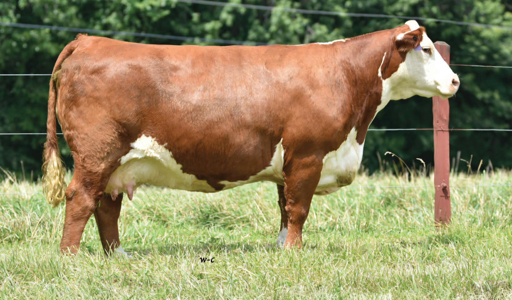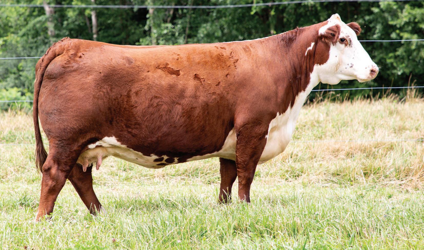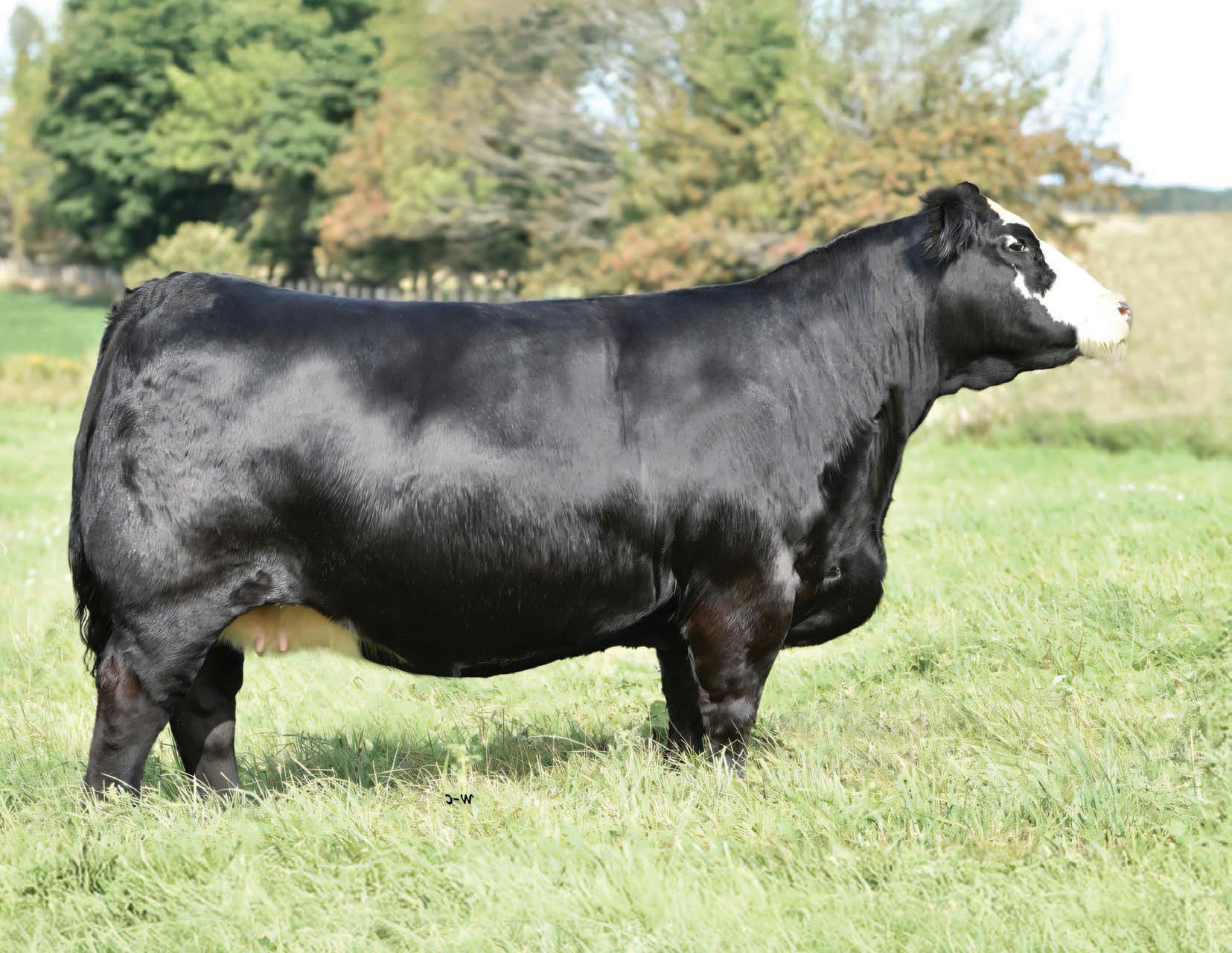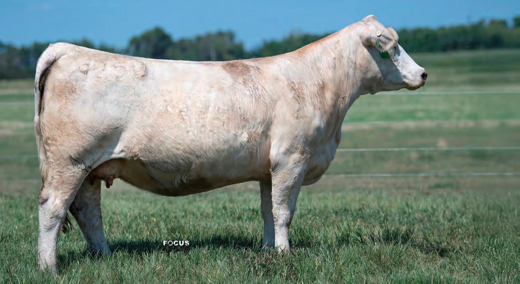 It’s not often you find a direct 157C daughter — let alone one with a negative BW EPD. Flawless in her udder attachment and teat placement, she also brings a calm, easy-going attitude. In today’s rising cattle market and evolving industry demands, 50M checks all the boxes. With pedigree, phenotype, and genetic ability stacked in her favour, she is destined for the donor pen.