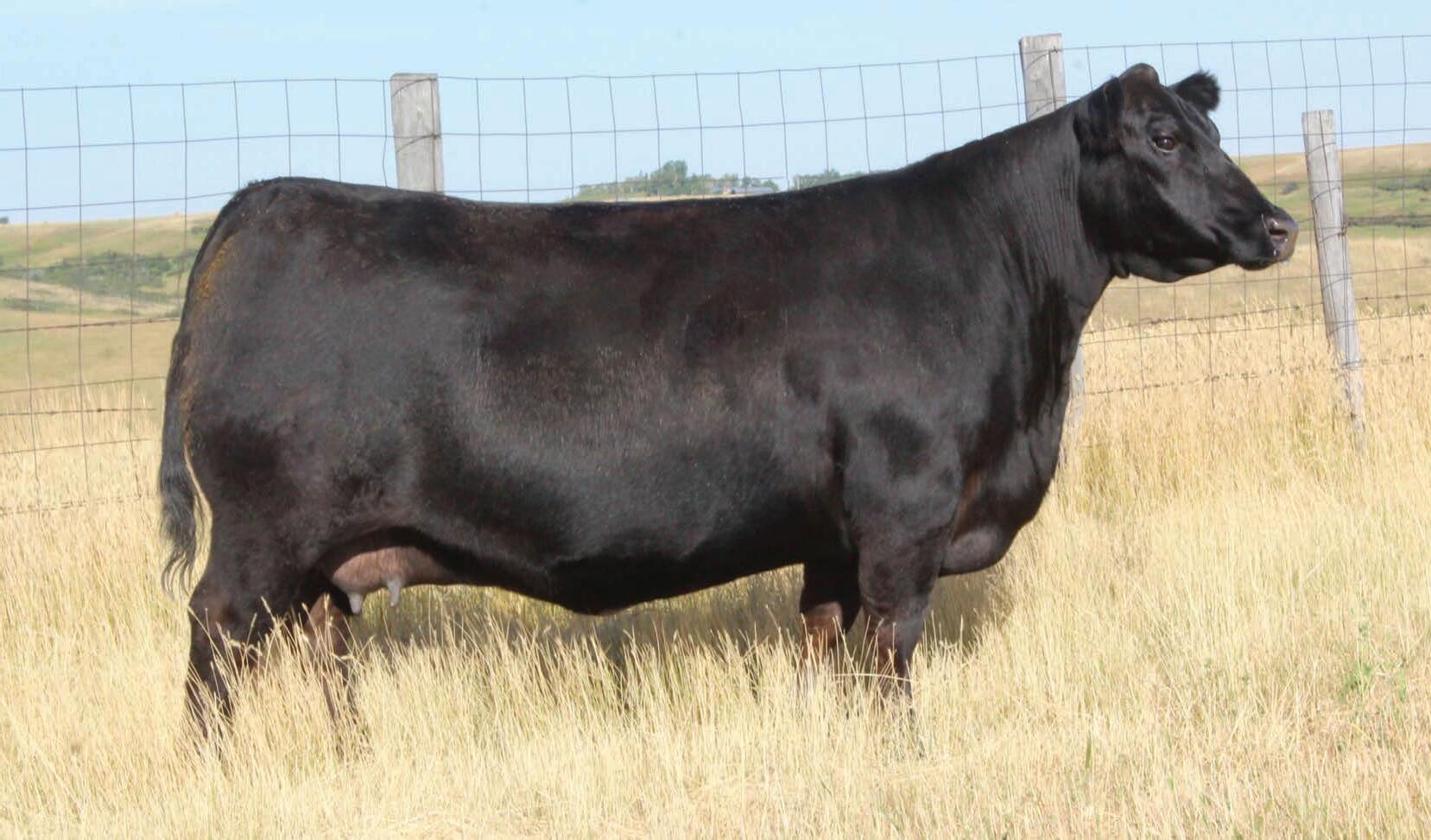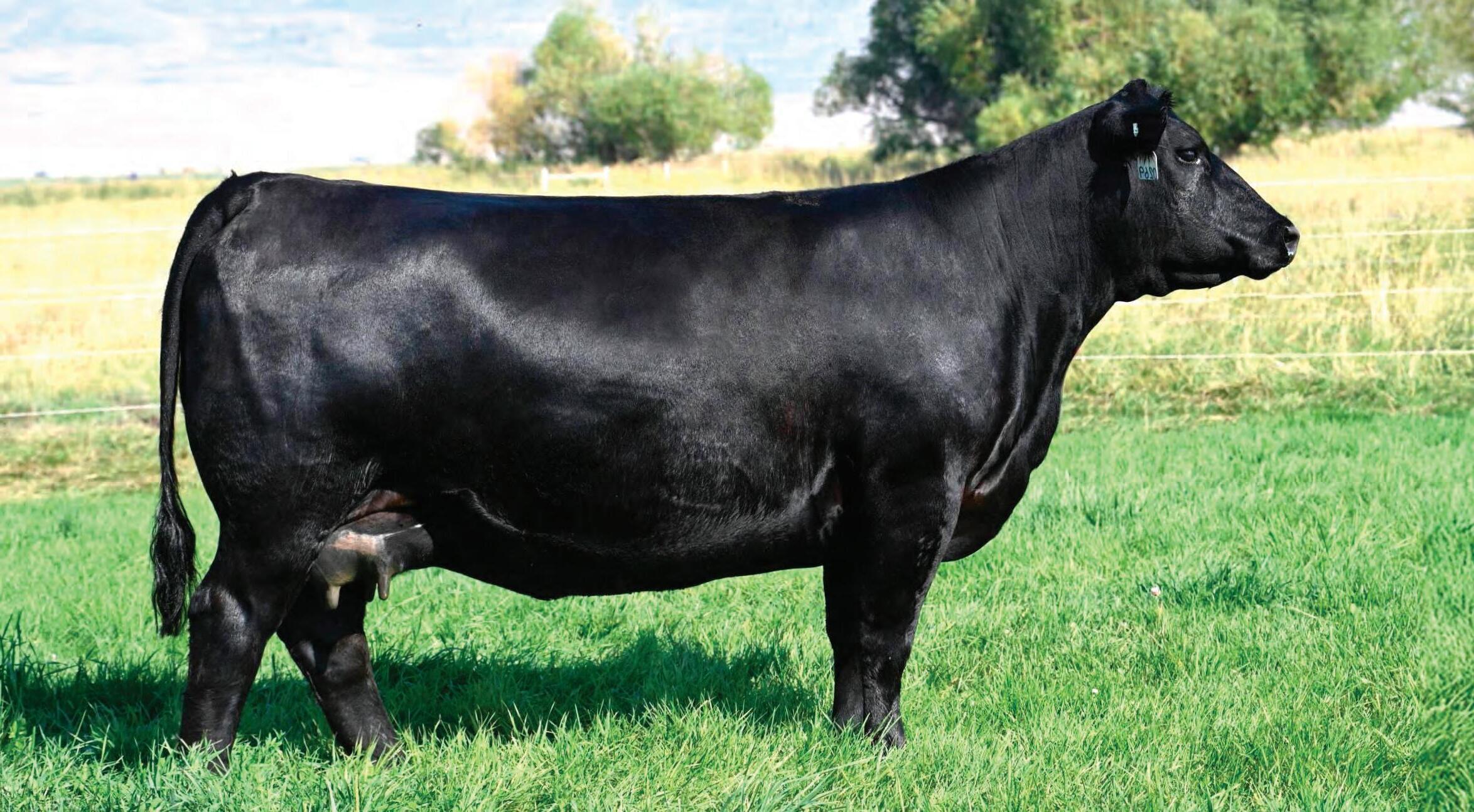A lead female for this event with sky is the limit donor potential. She is genetically and phenotypically outstanding with a commanding maternal presence. The Ellingson Profound daughters are leaving their mark at Peak Dot Ranch and Ellingson Angus with several daughters now in production. They are all stamped with beautiful easy fleshing body type, excellent udder quality and ideal foot structure and fertility. All real-world traits that affect production and profitability. Her dam was the top indexing replacement heifer of her year. We have had our eye on Peak Dot Barbara 66J since day 1 and she has more than proved herself on her last 2 calves with a weaning ratio of 106. She sells with a beautiful January heifer calf at side by Hi-Country making it a full sibling to