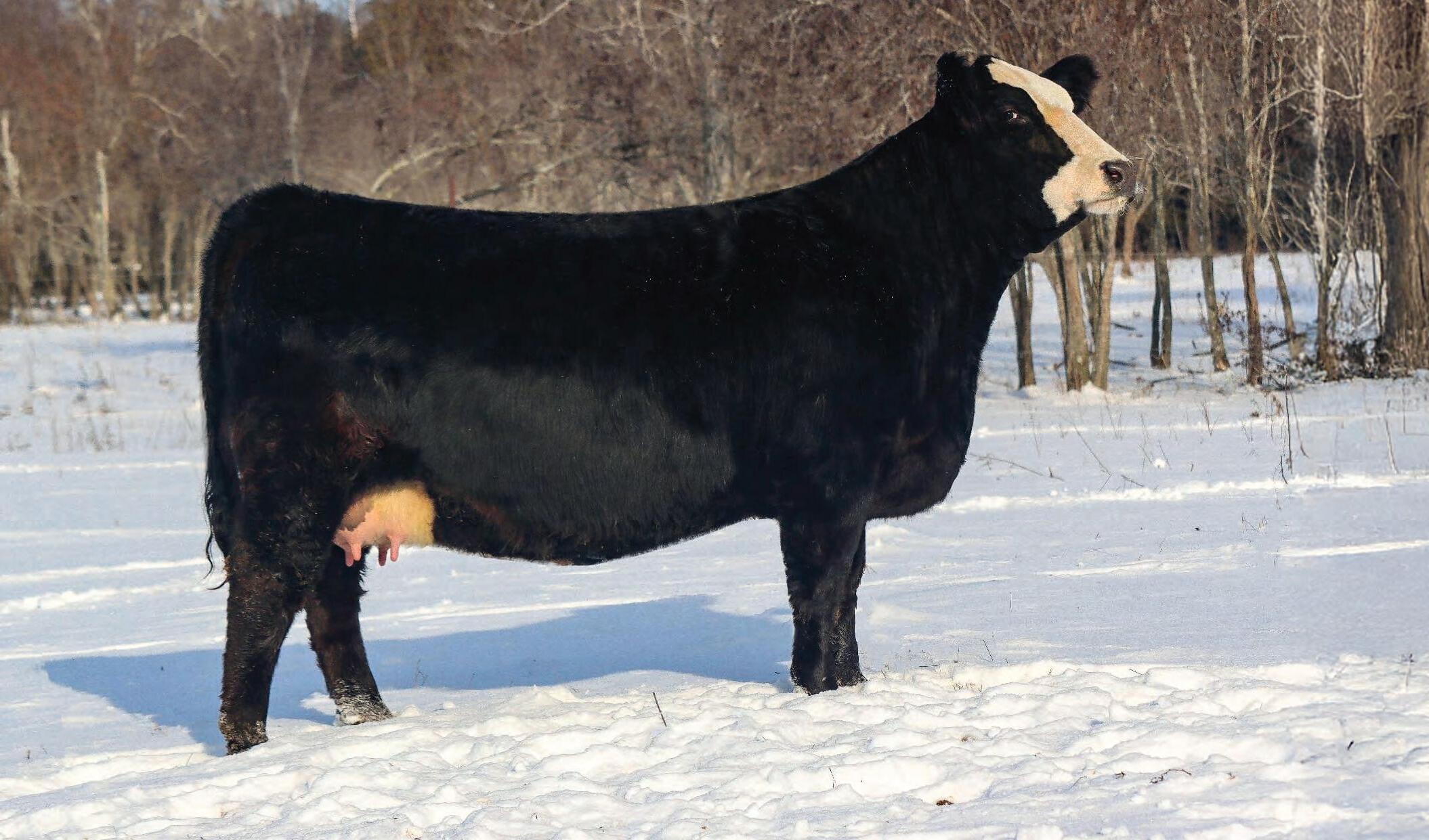 HF TIBBIE 224J - was purchased by Grand River Angus this past December at The Golden Oak “Cattle in Snow” Sale for $130,000 for 1/2 interest. Females like 224J are what make this Angus breed so strong and have the depth in the marketplace we see today.