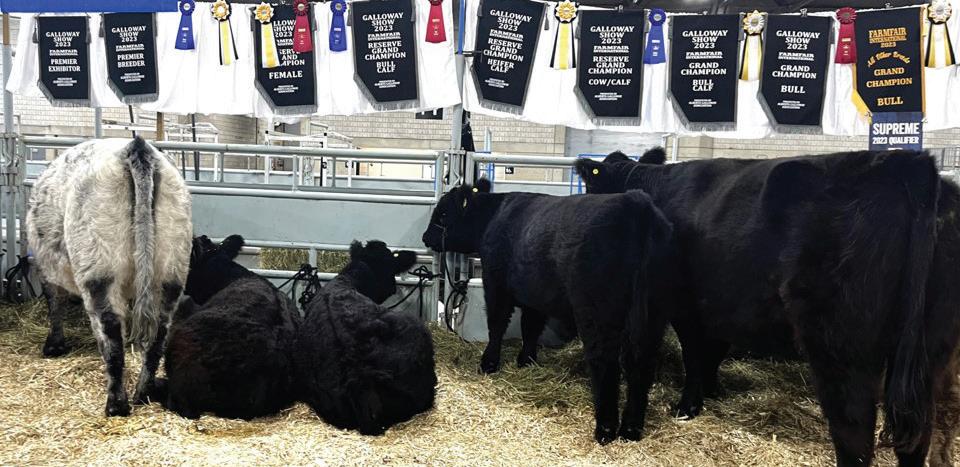 2023-2024 BOARD OF DIRECTORS 6 PRESIDENT’S MESSAGE 7 MEET THE DIRECTORS 7 ALBERTA GALLOWAY ASSOCIATION 14, 17 FARMFAIR INTERNATIONAL RESULTS 16 CGA REGISTRATION ACTIVITY 19 TOP BULLS FOR PROGENY 19 EASTERN GALLOWAY ASSOCIATION 23 ECGA JUNIORS 24 2023 WORLD CONGRESS 24 2023 REGISTRATIONS 26 TIPS FOR IMPROVING BREEDING SUCCESS IN BEEF COWS 30 CGA JUNIOR 4H MEMBER SHARE 32 UNITED KINGDOM & IRELAND GALLOWAY REPORT 35 GERMANY GALLOWAY REPORT 36 SCOTLAND GALLOWAY REPORT 38