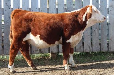 lbs. Consigned by: TWIN VIEW POLLED HEREFORDS TWIN-VIEW 94F Miss Sybbie 47J Female Polled TNVW 47J PC03082752 14/02/202137 BRED Heifers BW WW YW MILK TM EPDS 5.1 48.4 82.3 20.7 44.9 WLB WINCHESTER EASY RIDE 27B DLF HYF IEF GLENLEES 27B VENGEANCE 77D DLF HYF IEF MSUDF PC0302076 GLENLEES 75R HALEY 80W HAROLDSONS DENSITY T100 34A DLF HYF IEF DTHF DANIKA 145D PC03022077 DTHF ANGEL 51A This heifer is going to make a powerful cow. She is long sided and has a lot of rib shape to her. We calved out her full sister this past year and she dropped a flawless udder and expect the same with this one. AI bred to Boyd 31Z Blueprint 6153 on May 1, 2022 Pasture exposed to Calco 50E Traction 35H May 25, 2022-July 5,2022 BW: 88 lbs. Consigned by: CALVERT CATTLE COMPANY CALCO 77D