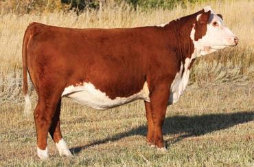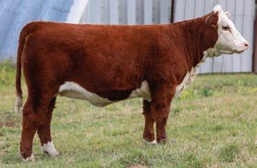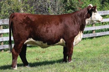 This dark red, fancy made female is bound to raise herd bulls. Stout made, long bodied and great footed. When she stops in the pen she gives you a look that is impossible to miss.