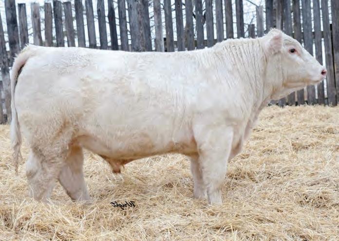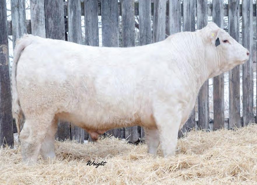 302L is a calving ease bull that will still give you the performance that we expect when using a Charolais herd sire. He has enough frame to breed mature cows and will work great on a set of Angus/Simmental cows.