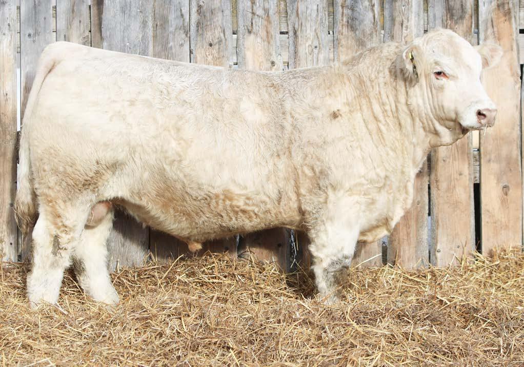 KAY-R Decker 264N is an extraordinarily big, stout and robust b ull with all the tools needed to leave a positive impact on his calf crop. He has all the red meat and true power you could want and need while maintaining the proper angles to his skeleton design. 264N has a really attract ive skull shape and the proper structure off both ends. His dam has worked her way to being one of our favourite young cows with her foot quality, attractive design, added rib and hip shape with a tremendous milk and udder quality. His granddam was used in our ET program raising multiple bulls working in purebred and commercial operations. Decker’s EPD profile is just as big time as he is himself being in the top 50 percentile or above in every trait. Top 3% REA, top 5% TSI, top 10% for MK,MCE and MWWT, top 15% for CE, top 20% for SC and FAT, to p 30% for YW and CW, top 35% for MARB, top 40% for BW and YW, top 50% for DOC. Looks and reads like a big time herdbull.