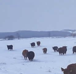 Leewood Ranch is a mixed farming operation were we seed 1000ac of crop and run 500 head of Simmental ca le. We have approximately 250 purebred cows and 250 commercial cows that we run as one group. The herd is bred for early January calving and we calve everything together. Purebreds are treated like any other cows on the place and no ma er the price tag only the good ones get to stay. We use AI heavily with 70 to 80% of the cow herd being bred on natural heats. We also implant 60 to 80 embryos per year. Embryos are sourced from many of the top herds in the industry, along with embryos from our own donor dams. Our cows run on private pasture and community pastures in large groups.