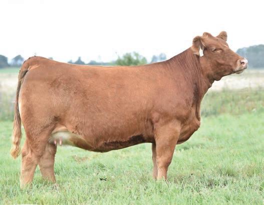 RHF Shamrock Trend 506N is a thick-made, deep-ribbed, red herd bull that offers real-world power and shape. Wide based and stout featured, he carries muscle and dimension from his shoulder through his hip while remaining sound and athletic in his movement. Backed by a productive cow family, he blends growth, structure, and practical performance into one complete package. A bull built to add pounds, improve shape, and leave a strong set of replacement females. 506Ns dam is a