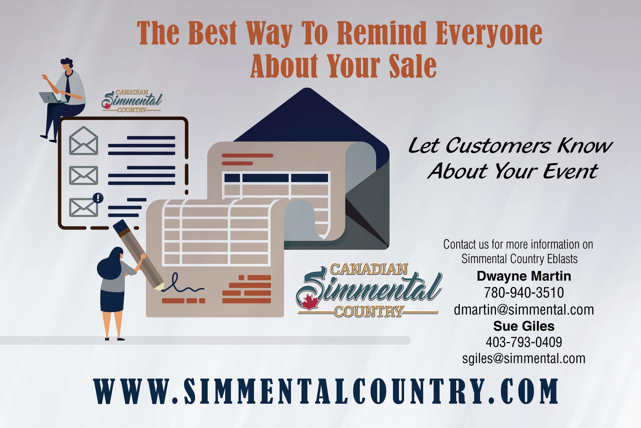 The Simmental Country assumes no responsibility for the accuracy and truthfulness of submitted advertising copy or electronically supplied pictures and has the right to refuse any ad copy or photos. Advertisers shall indemnify and hold harmless the Country containing pedigrees or statements regarding performance must conform to records kept by the Canadian Simmental Association. Copy deviating from official records may be changed as necessary without advertiser consent.