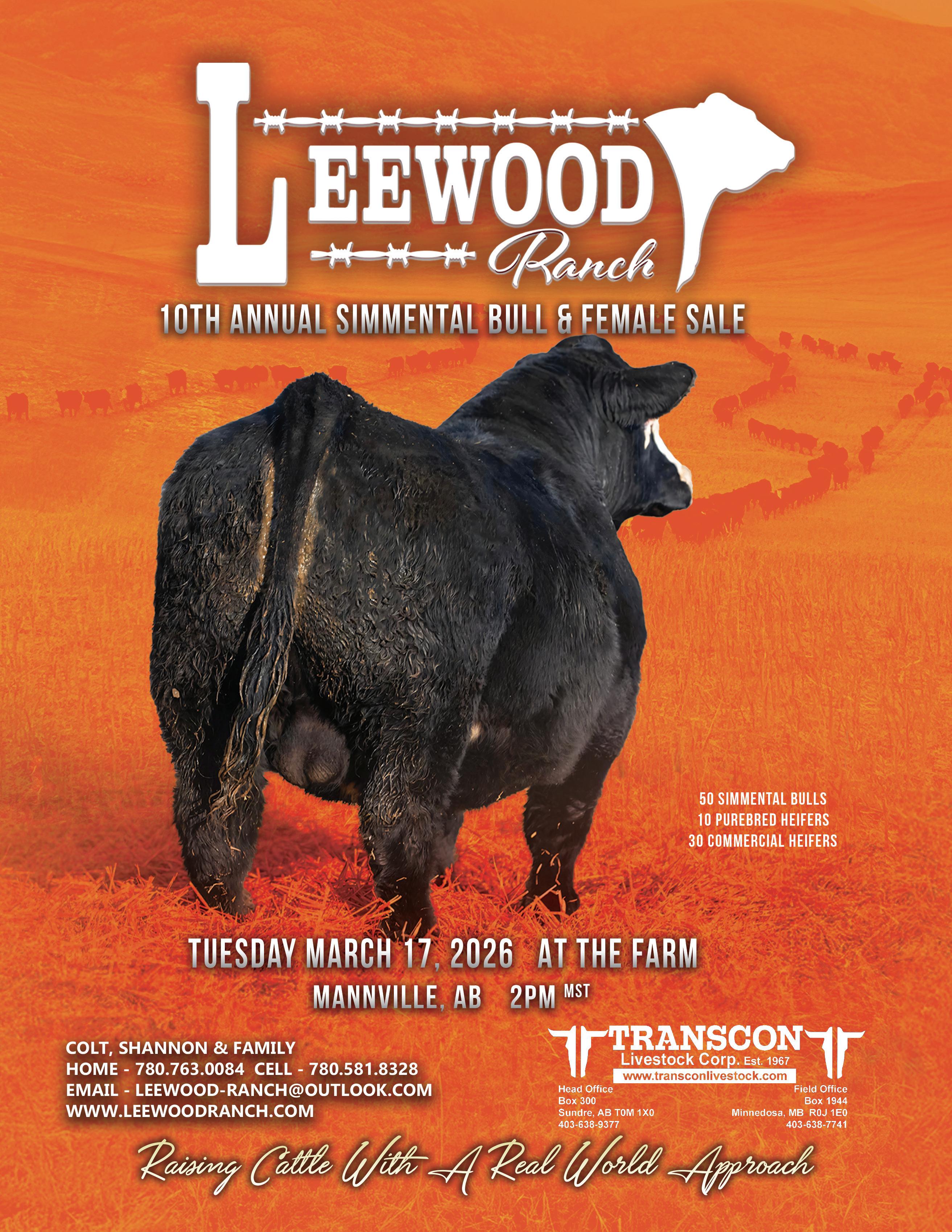 MAR 17 LEEWOOD RANCH 10TH ANNUAL SIMMENTAL BULL & HEIFER SALEMANNVILLE, AB