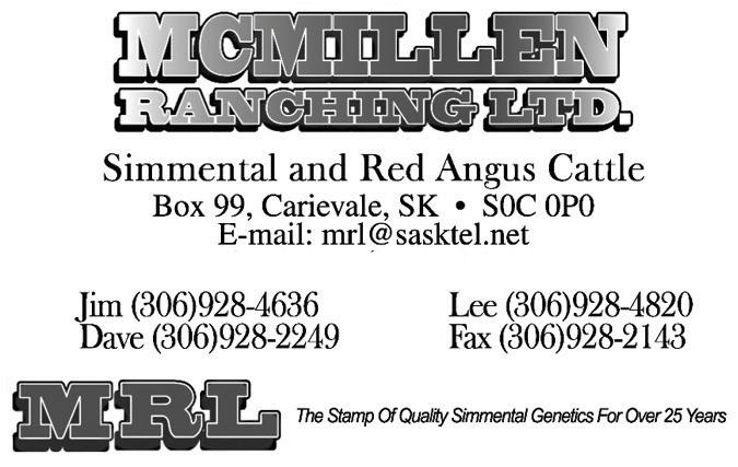 MAR 7 MCMILLEN RANCHING LTD 32ND ANNUAL BULL SALE - CARIEVALE, SK