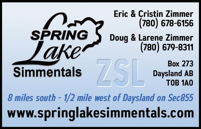 SPRING LAKE SIMMENTALS, THE ZIMMERS - BULL SALE - DAYSLAND, AB
