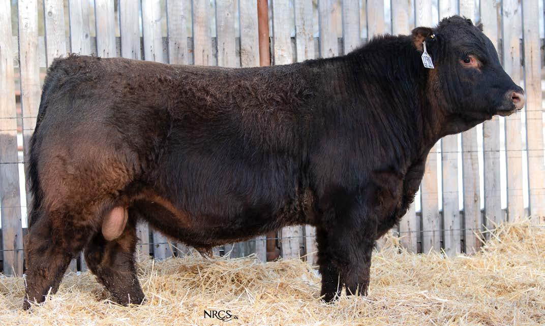 A hell of a bull from a favourite cow family. The HEJ Wilma line has produced many sale bulls and females running in the herd. His dam is a big bodied, long feminine cow with a nice udder. He is a top gainer in the pen. He is a very eye appealing free moving bull.