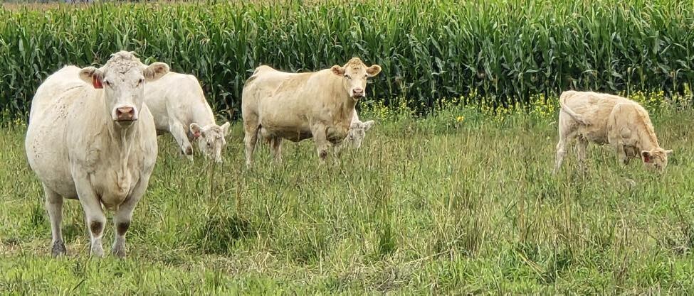 This season, we tried growing corn for the first time. Watching the crop thrive with ample moisture was exciting, resulting in an 18 ton/acre yield and high-nutrient silage. As a result, we have made some adjustments to our feeding program. After weaning, bulls received a TMR ration of barley silage/hay and whole oats. Beginning of December, we added corn silage and rolled barley. Currently, their ration is a TMR with half corn silage and half barley silage, mixed with ground first-cut hay, 7 lbs of oats, and 5 lbs of barley. Our goal is a steady 3 lb/day gain— the pen averaged 3.1 lb/day. We believe slow, steady growth promotes optimal health and structural longevity. It is always rewarding to hear from customers who still have a bull they purchased from us eight years ago!