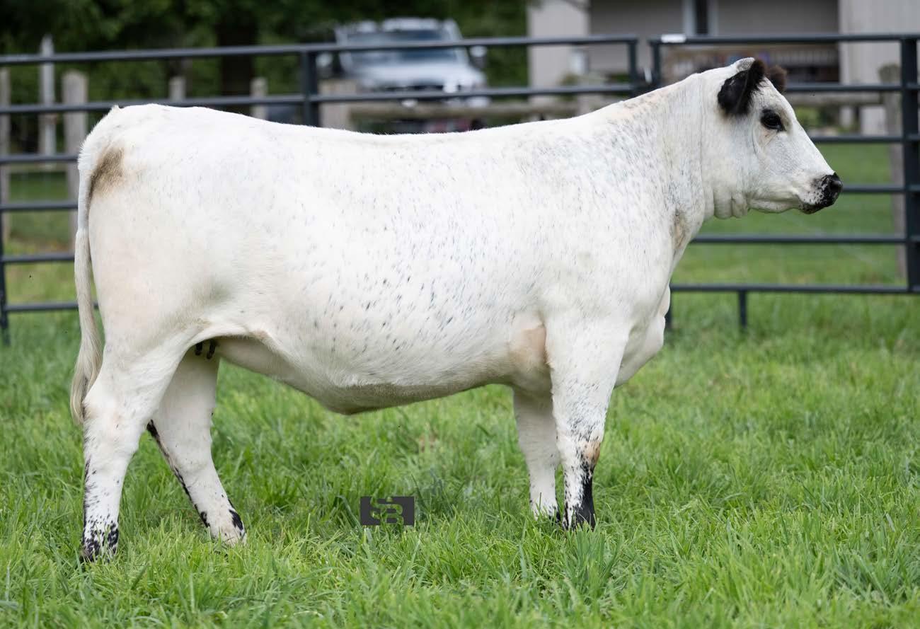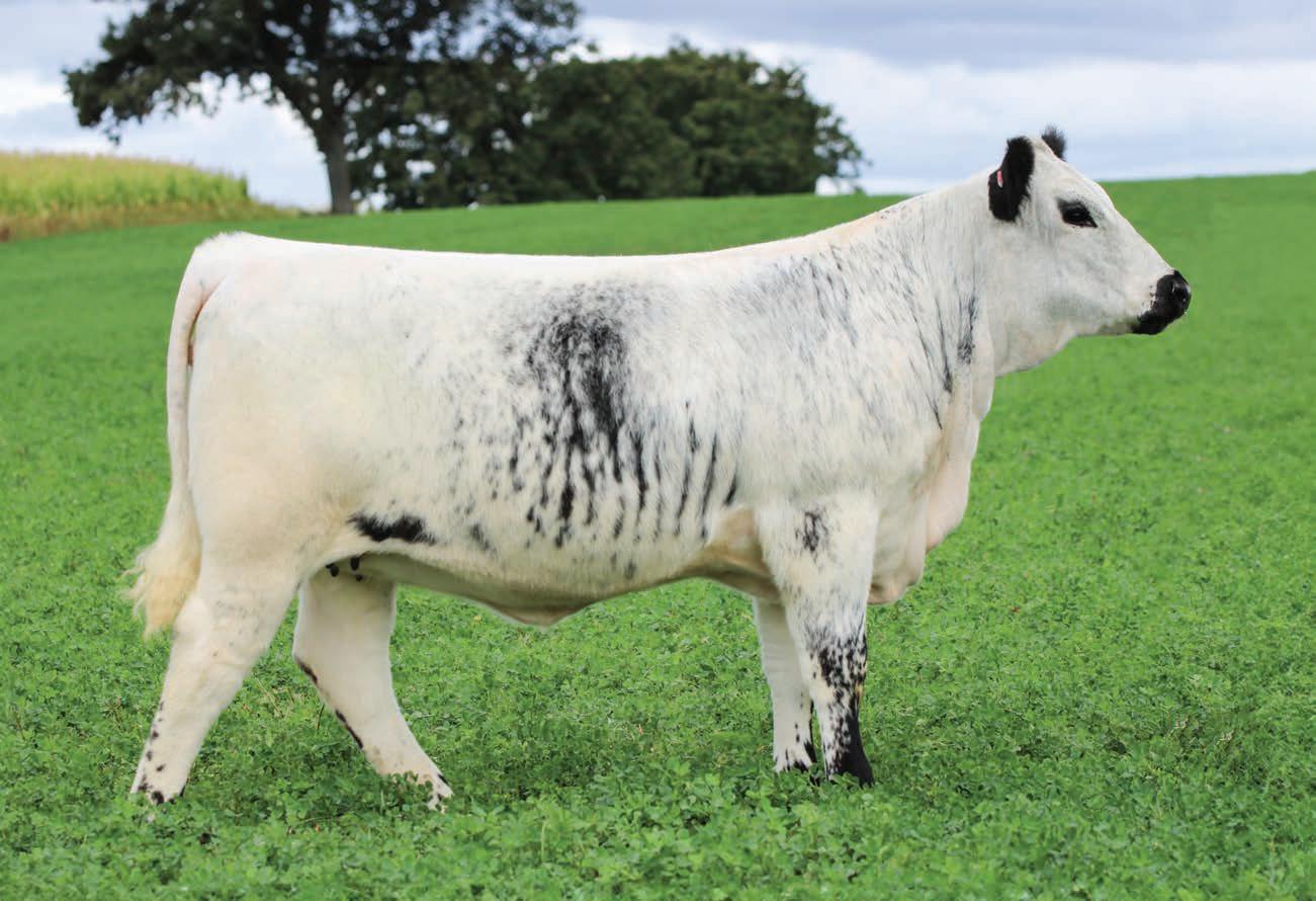 This cow has a lot of size and strength and is from a Putnam son and a consistent-breeding family on the dam’s side. She is a great mother, is easy to work with, and breeds back quick.