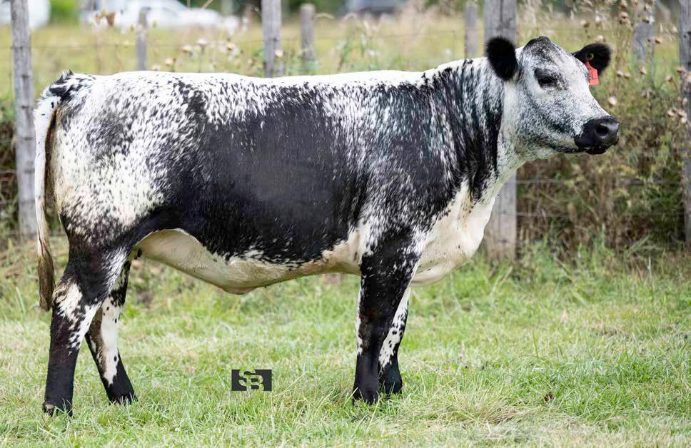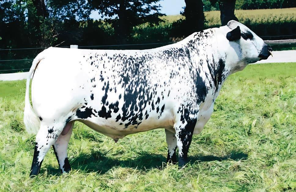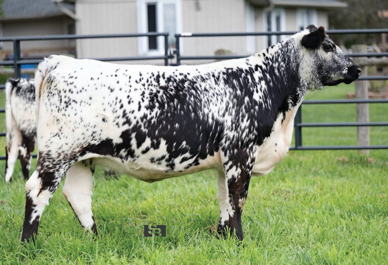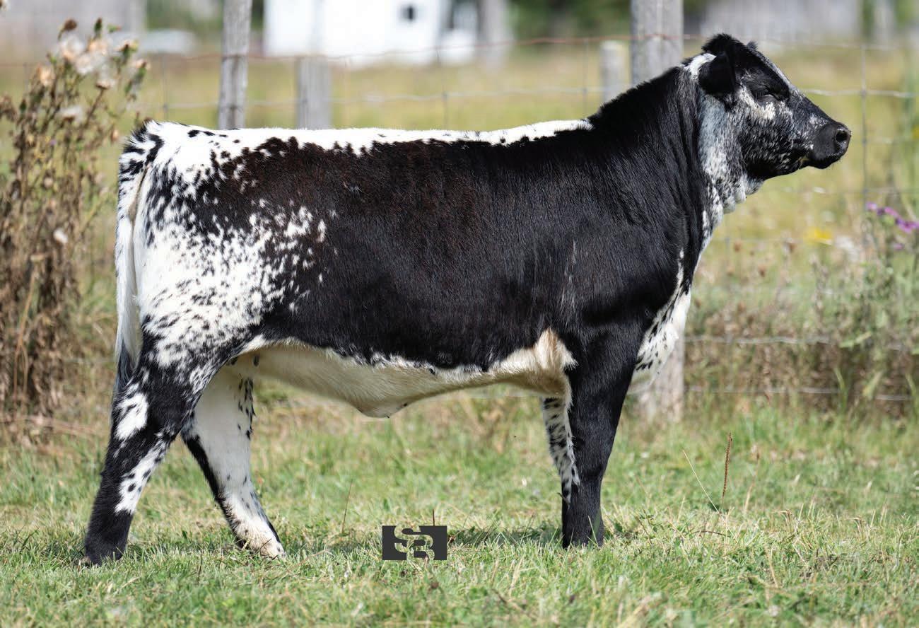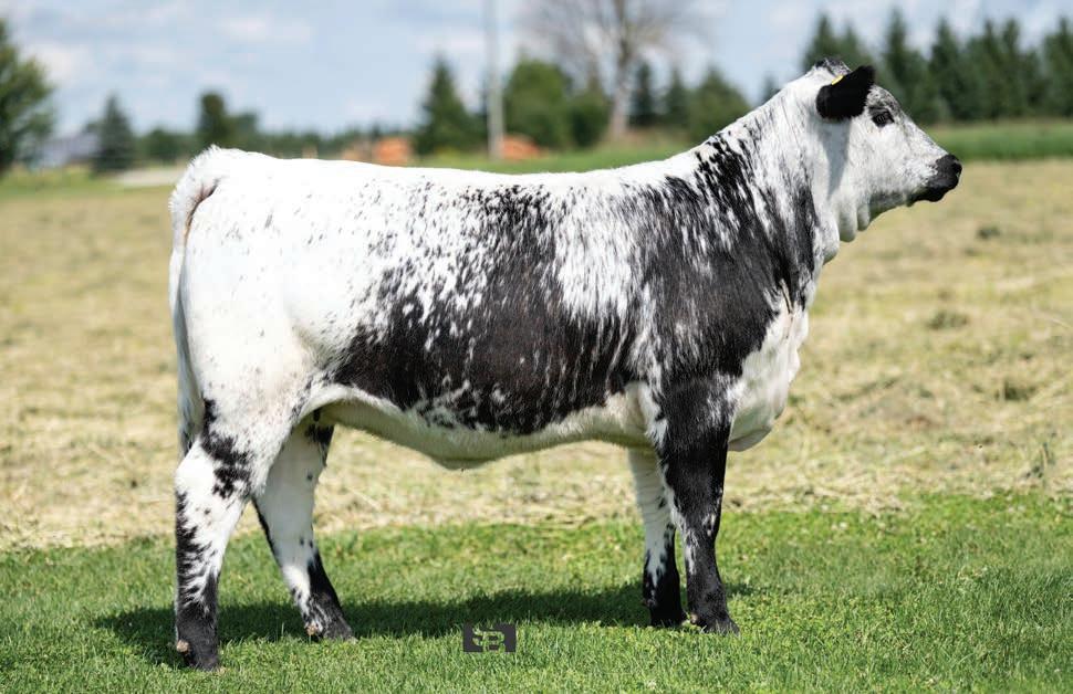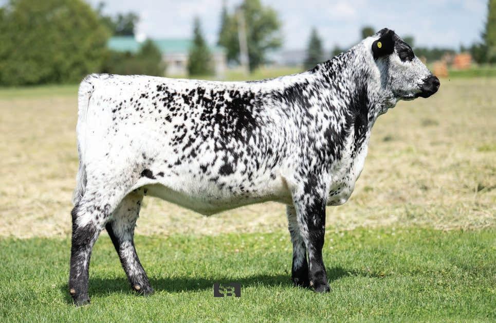 This powerhouse bull comes from heavy milking females on both sides of his pedigree. Big middled, good footed, and big nutted, he’s a production focused sire that will put pounds on his calves. 20K was shown successfully at Expo Boeuf, winning Champion Senior Yearling Speckle Park Bull and Reserve Champion Speckle Park Bull.