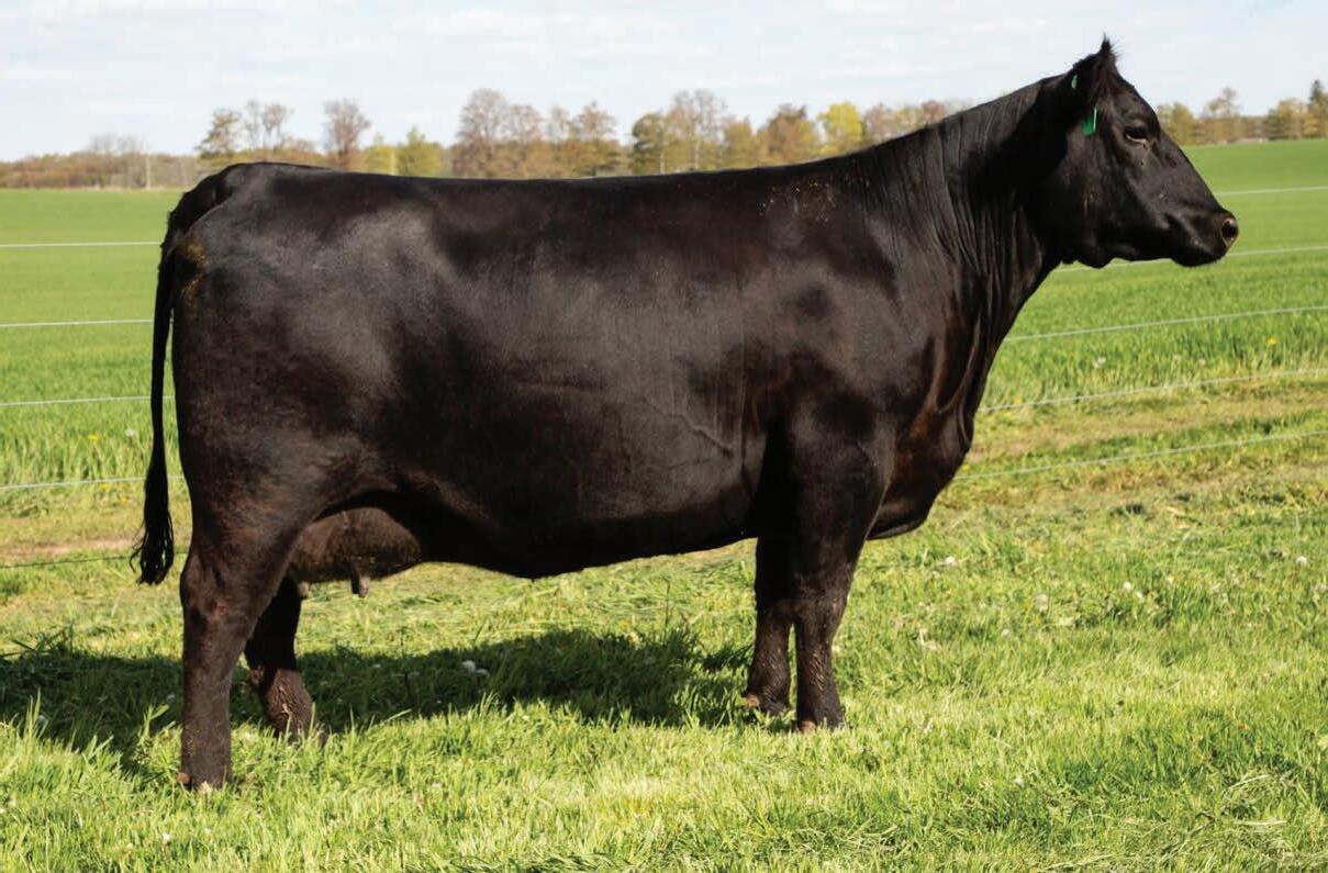 is a proven and powerful matriarch at Meadowbridge Angus, celebrated for her outstanding genetics and remarkable influence on the herd. As a pathfinder dam and seventh-generation embryo donor, she is deeply rooted in the legendary Madame Pride lineage, upholding its standard of excellence with unmatched maternal strength. With 15 daughters retained in-herd, she continuously enriches Meadowbridge Angus with her superior traits and consistent production quality. Her progeny have proven their value, with 28 offspring commanding an impressive average of $13,633 in past sales—a true testament to her elite genetics and the lasting impact she imparts on every generation.