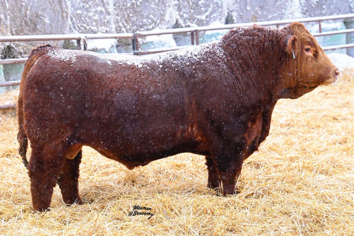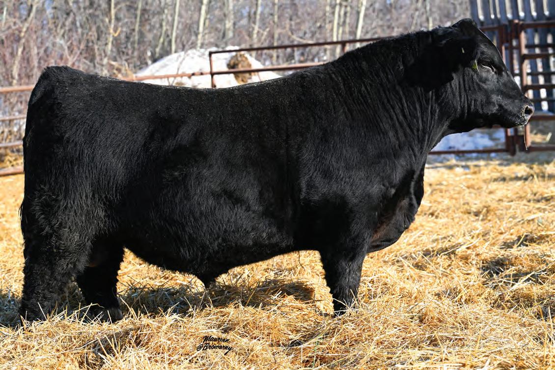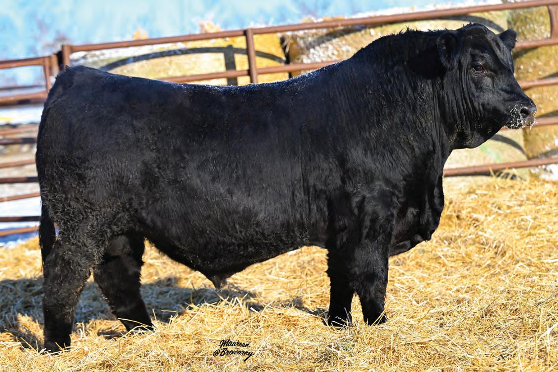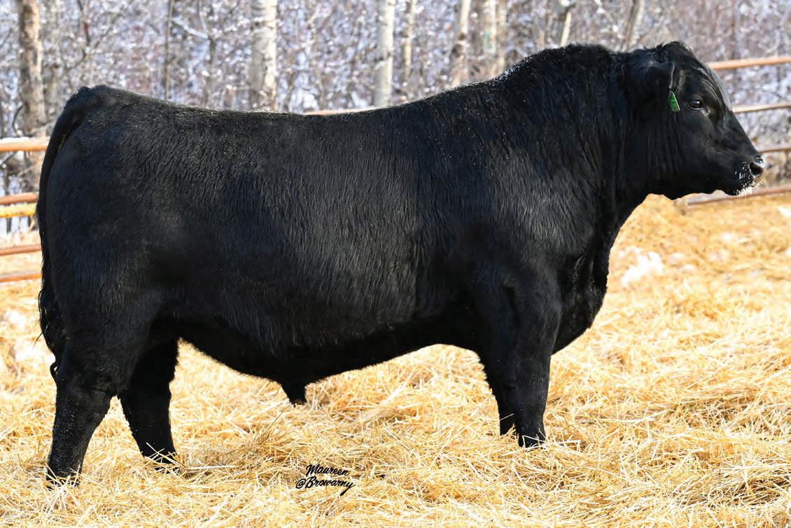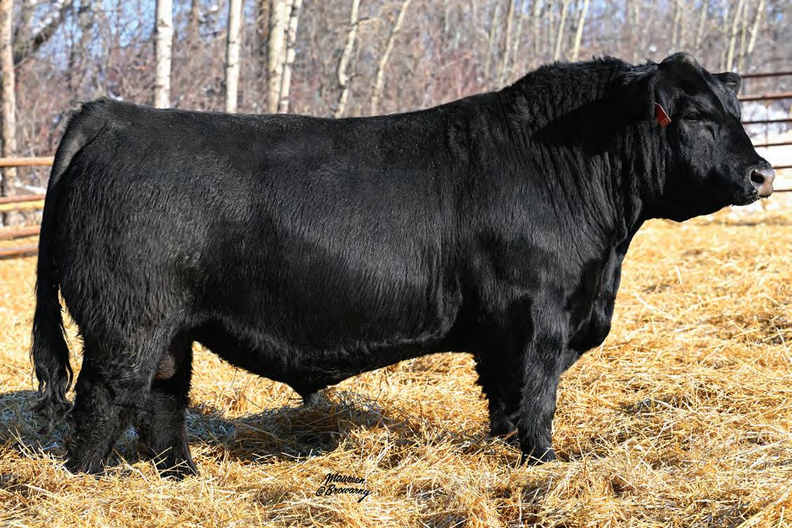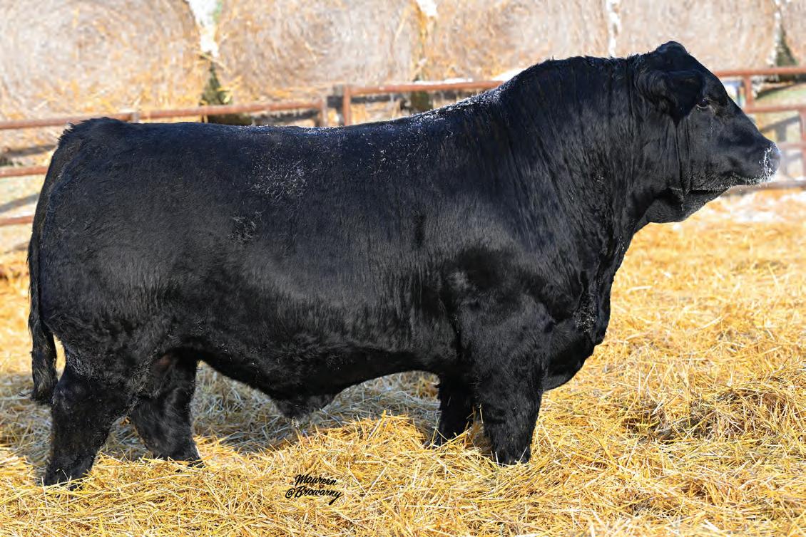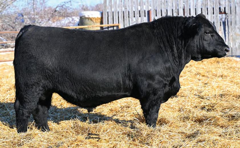 Pen favourite by visitors! Performance headliner and genetic masterpiece with unparalleled depth of rib and herd bull character. We purchased his dam from good friends at J Square S. The Ruth Cow family has done extremely well for