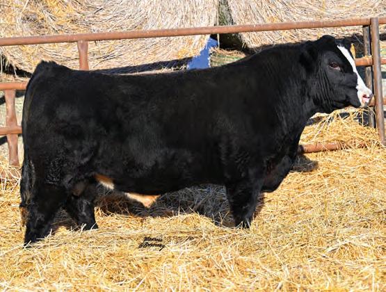 We bought this bull’s sire to use on some of our most proven Angus females to create our own half blood Simmental females that we could breed up to purebreds. In the process, we have obviously created some outstanding half blood bulls. These Simm-Angus bulls truly blend the best of both worlds. This light birthweight black white face bull will definitely be an asset to anyone’s herd bull battery. His dam, MLG Blackbird 18Z, has raised some of the best bulls and easily the most productive females we have ever had. She is still in the herd at 14 years of age.
