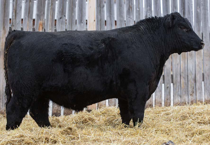 We purchased 159H out of the North Point Angus Dispersal as a mature herdsire. He has really impressed us with his overall volume, muscle shape and style combined with very good feet. This bull has left us a very even set of calves both male and female.