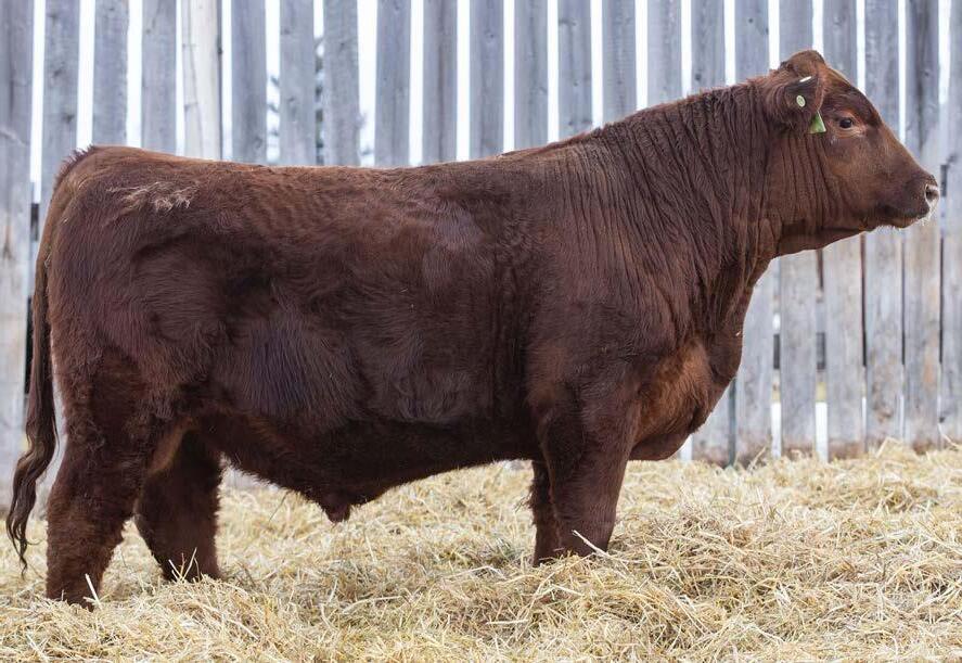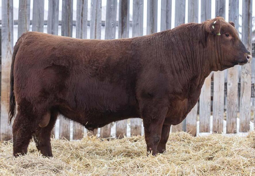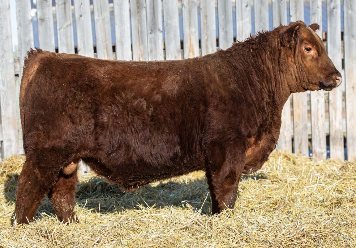 Jolt was a Sale Feature at our 2022 Bull Sale, we had the opportunity to buy him back and he is co-owned with Brownalta Farms in Alberta. He is an outcross bull sired by Red T-K Buckeye 81F and out of a top producing Erica Cow, 51C.