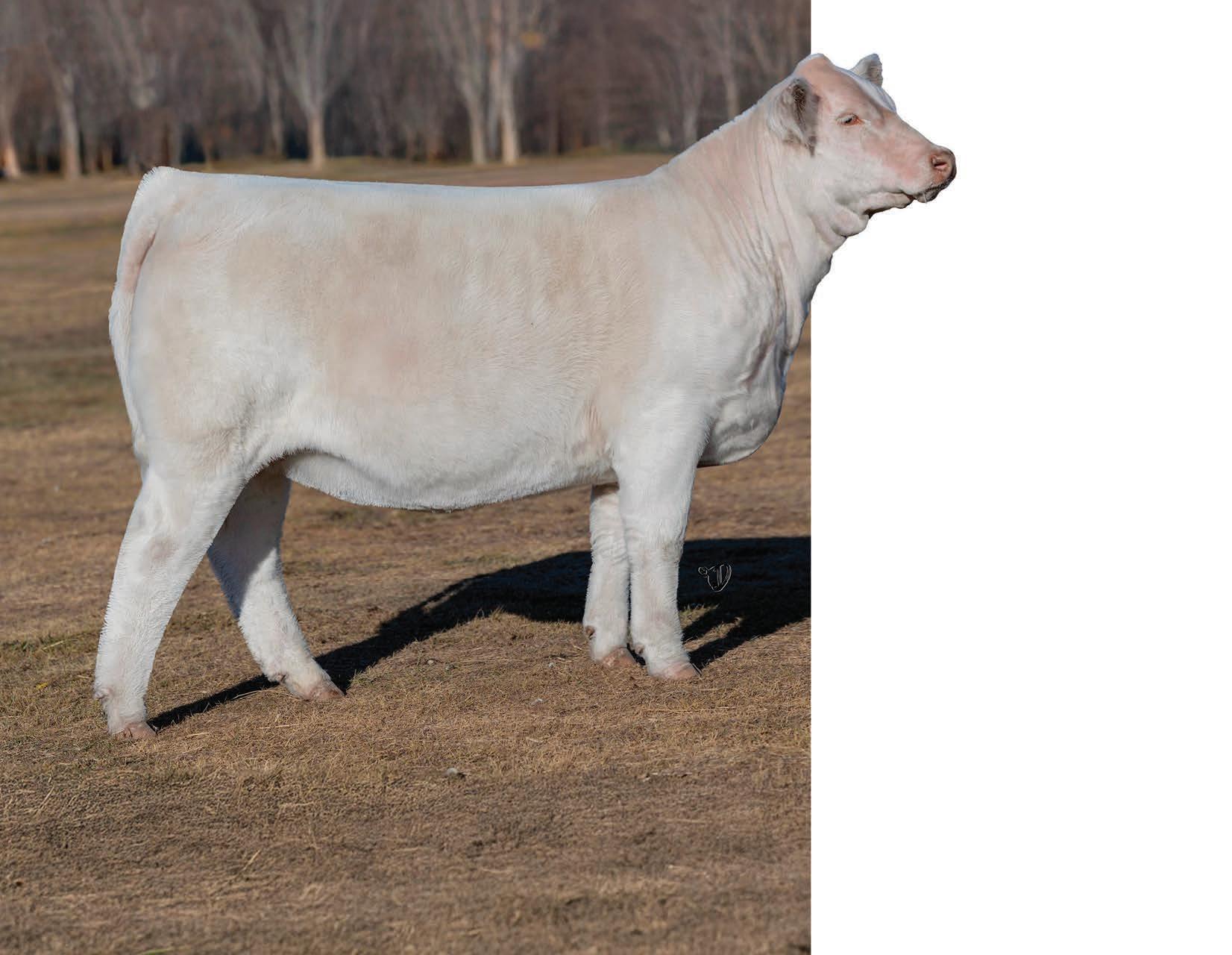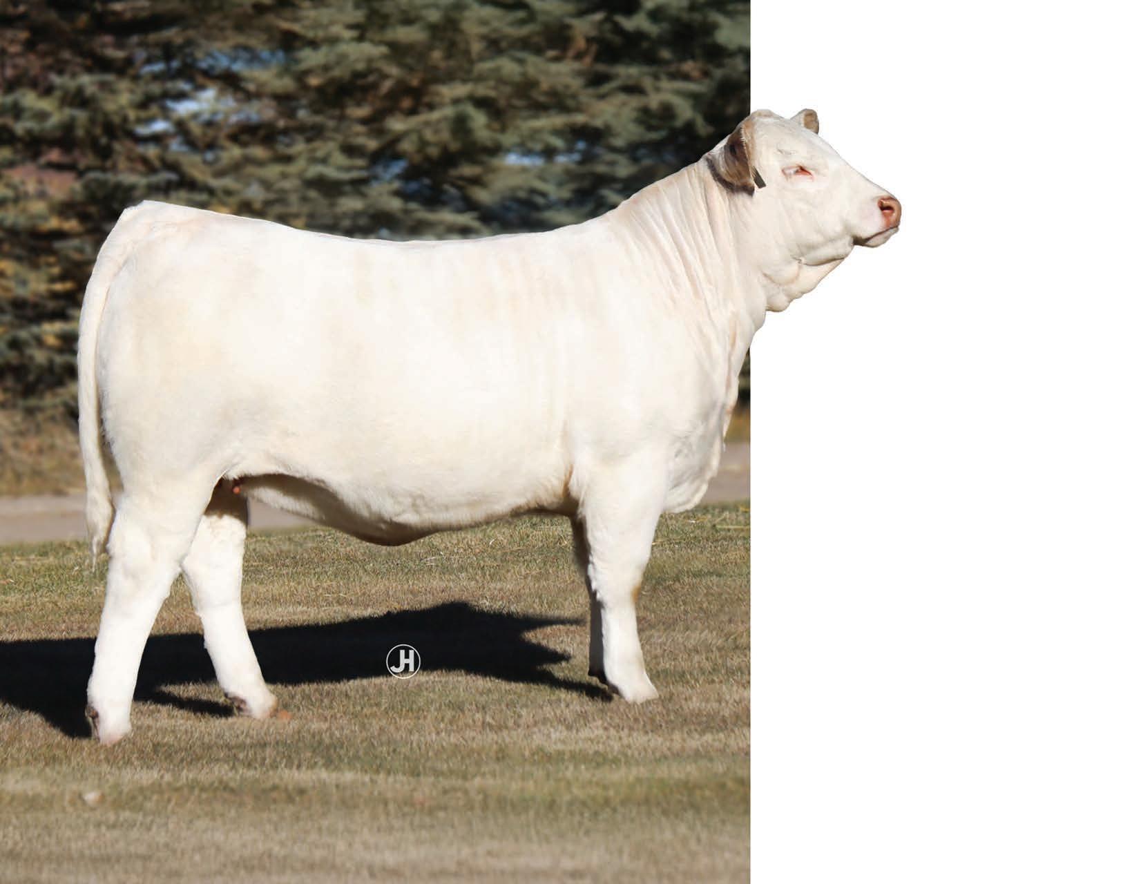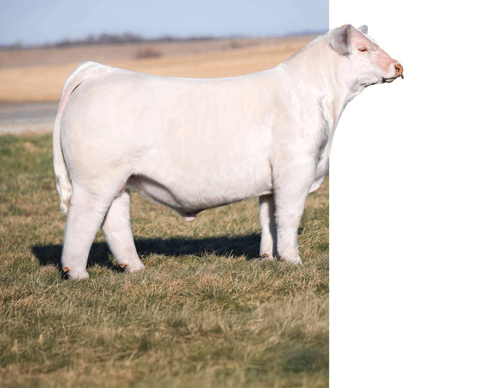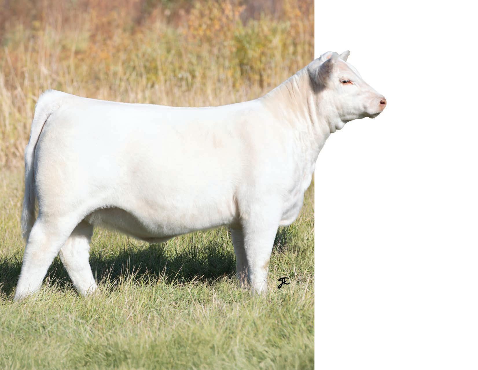 He is one of the coolest built, smooth and boldest bodied, and biggest haired Charolais bulls in the Industry today. Seamless in his transition from each third, Bold and square in his muscle pattern, he’s a level hipped charolais sire that tacks on an exquisite neck attachment and sticking front third that the show ring so desires.
