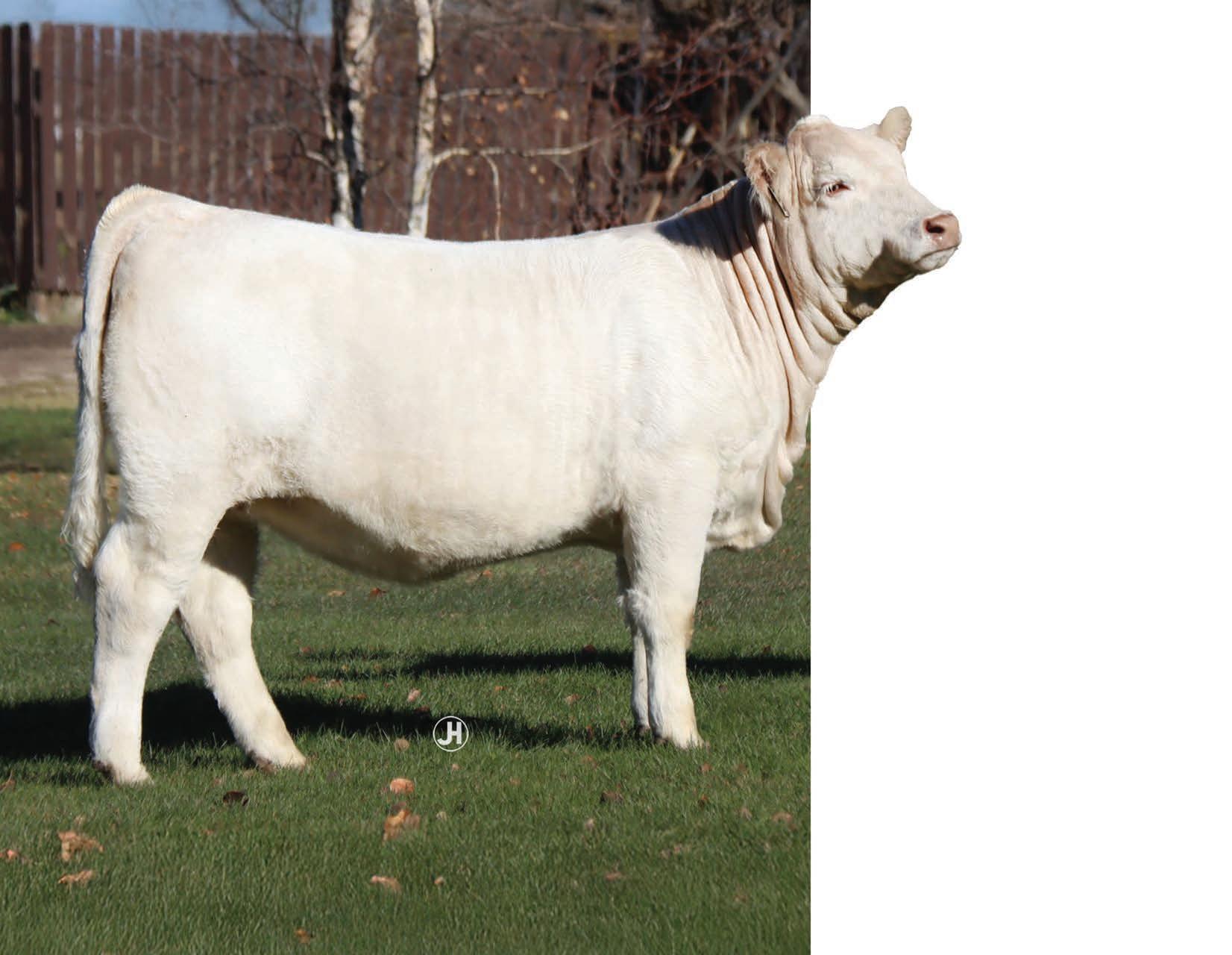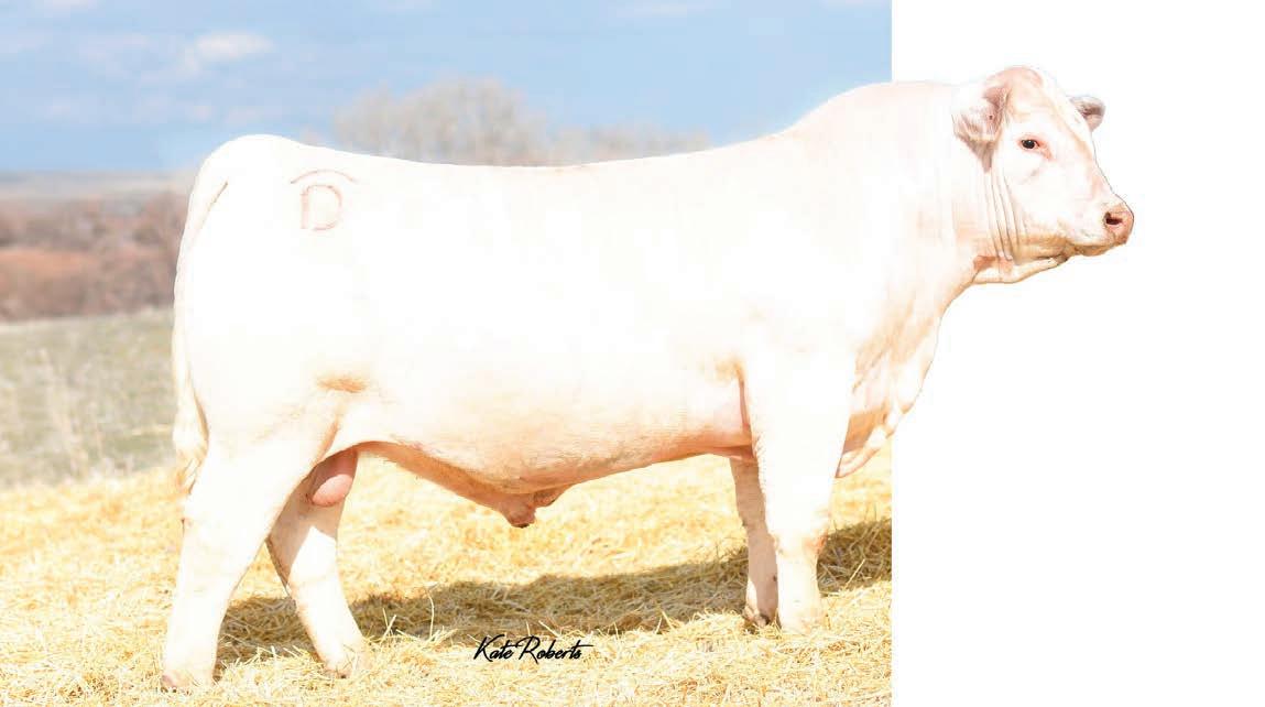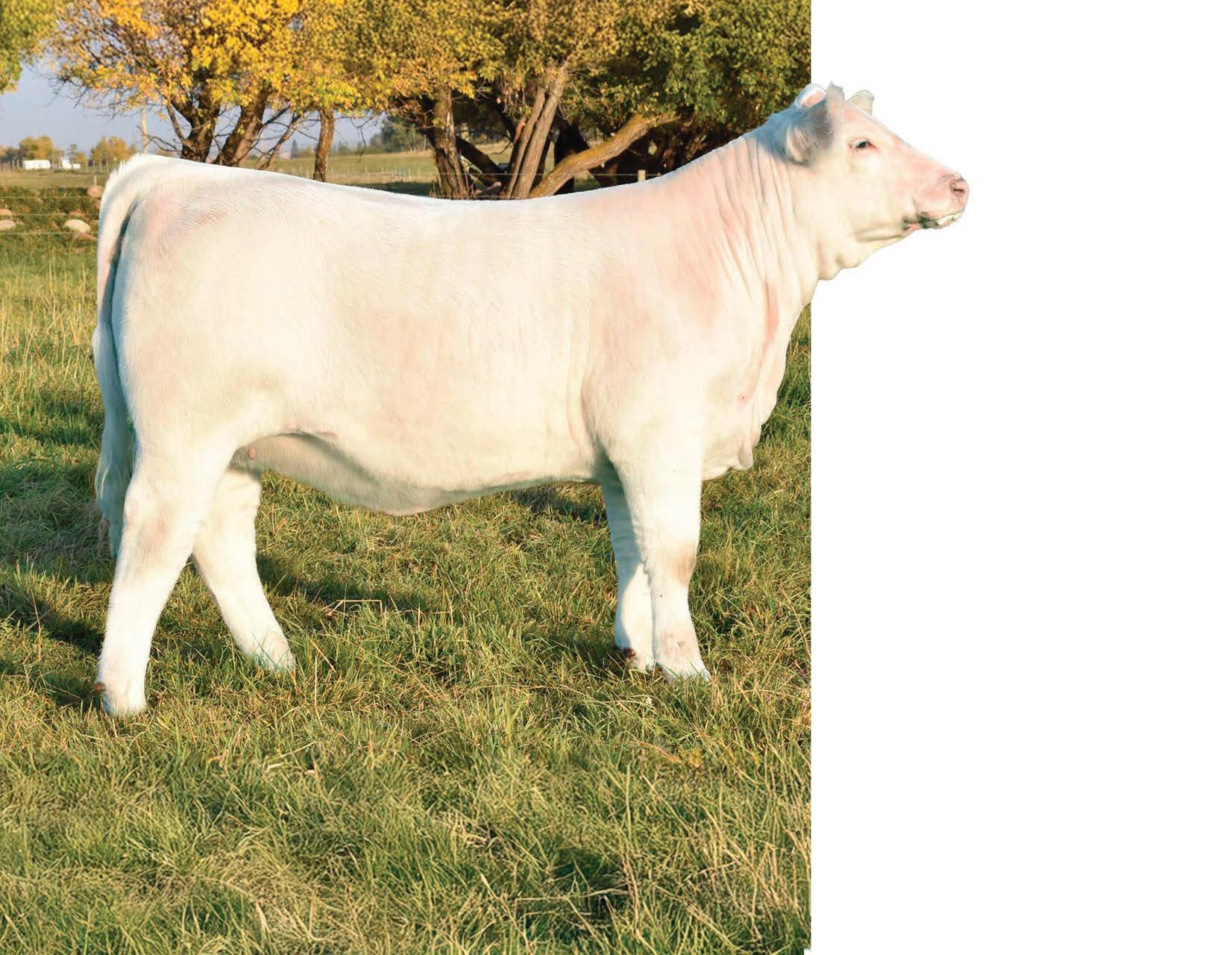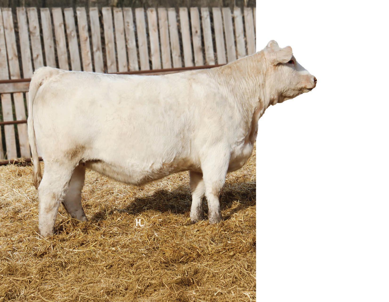 He is one of the coolest built, smooth and boldest bodied, and biggest haired Charolais bulls in the Industry today. Seamless in his transition from each third, Bold and square in his muscle pattern, he’s a level hipped charolais sire that tacks on an exquisite neck attachment and sticking front third that the show ring so desires.