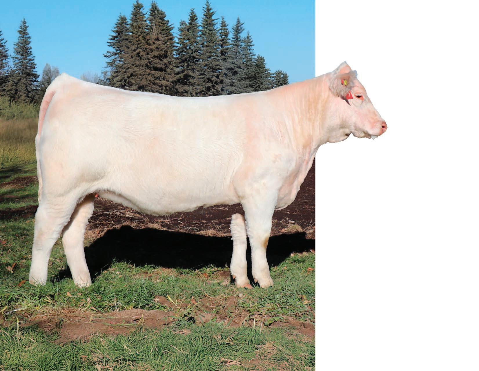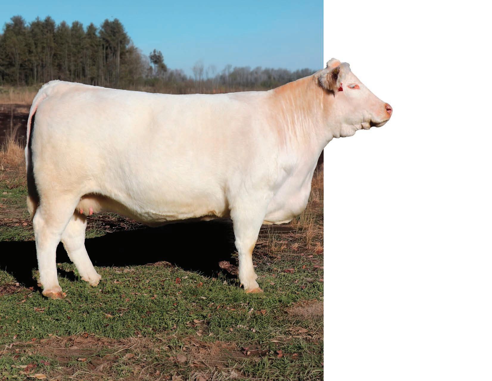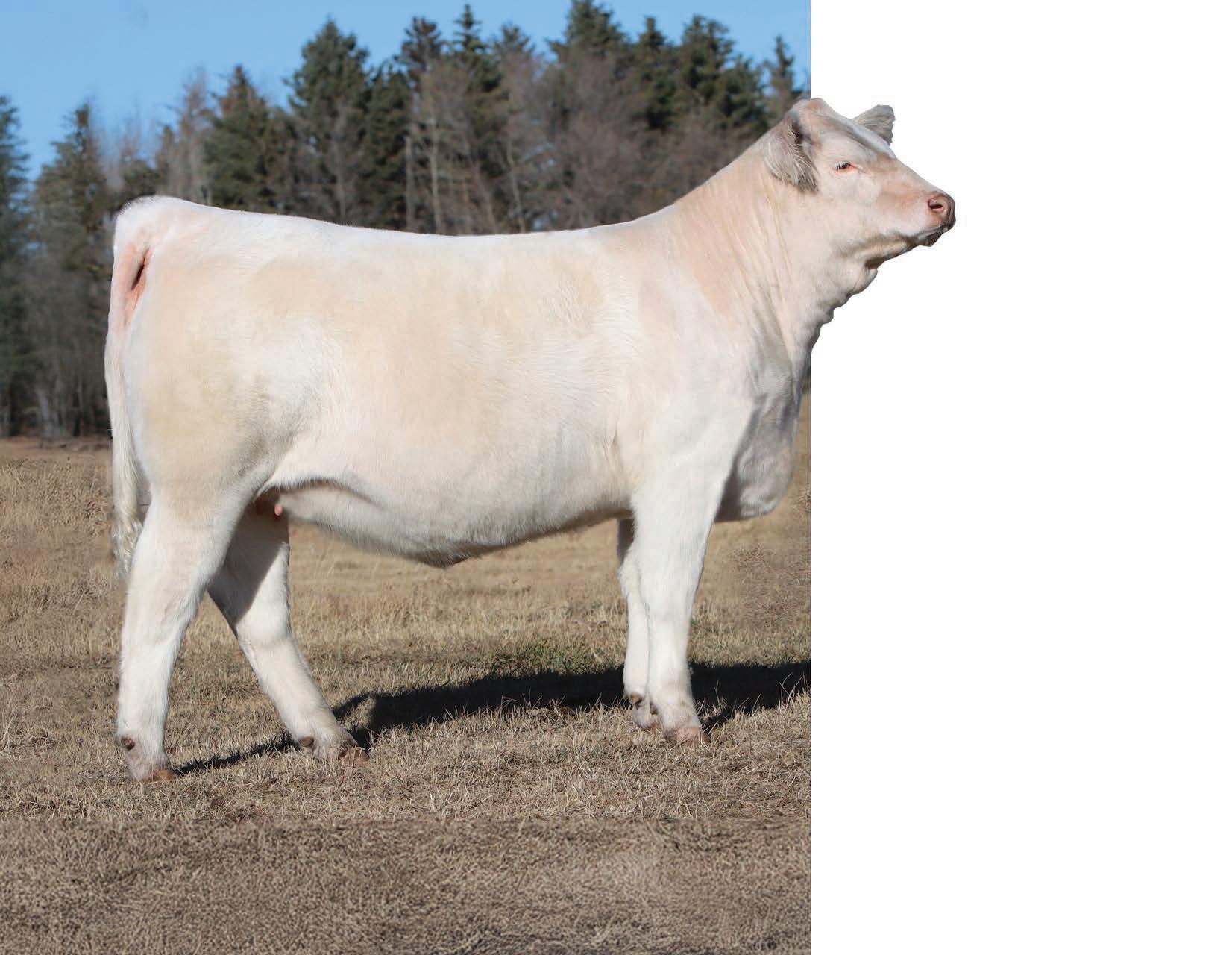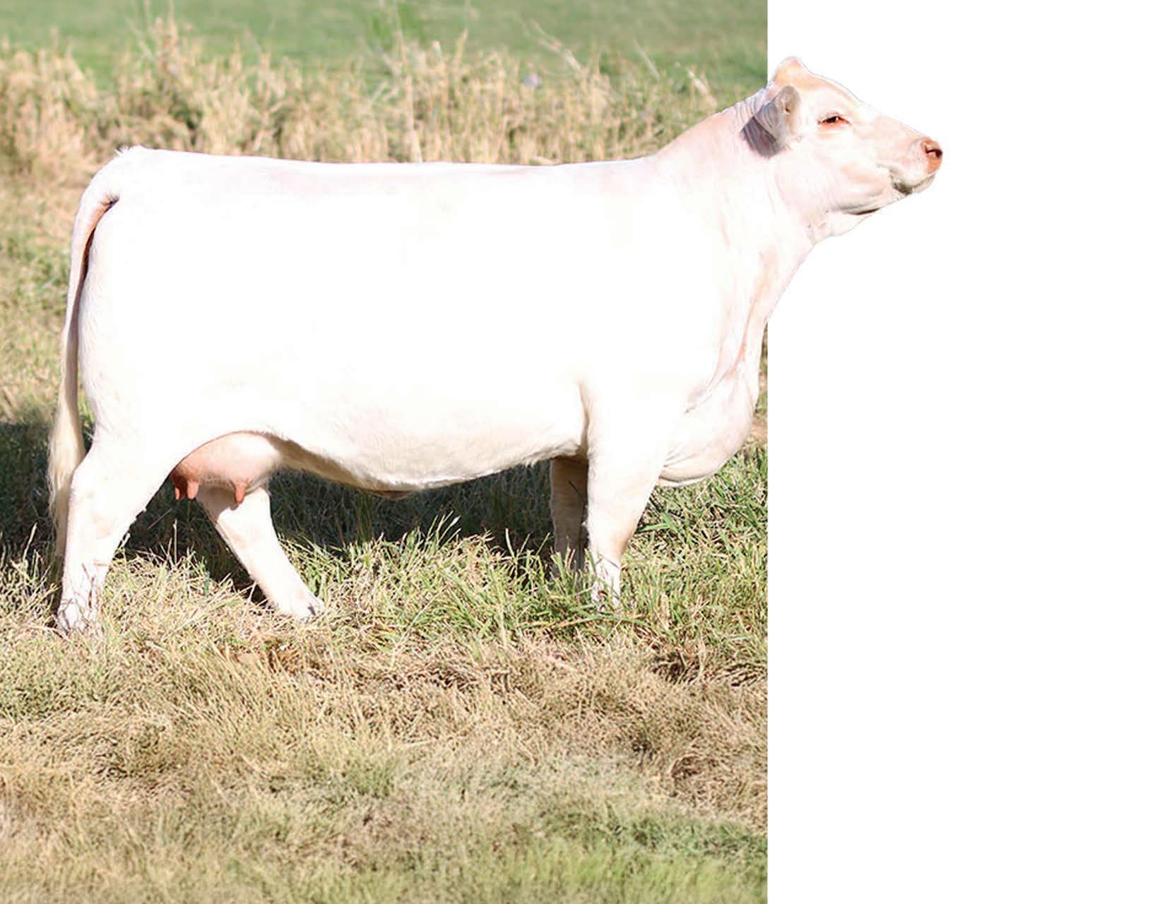 He is one of the coolest built, smooth and boldest bodied, and biggest haired Charolais bulls in the Industry today. Seamless in his transition from each third, Bold and square in his muscle pattern, he’s a level hipped charolais sire that tacks on an exquisite neck attachment and sticking front third that the show ring so desires.