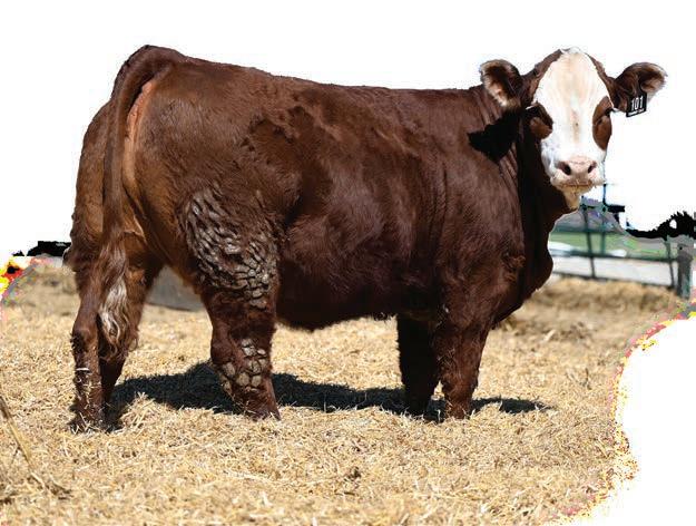 A real good looking Historic son with all the right pieces. Short marked and red to the ground, you’ll love to look and handle this dark red pigmented bull. Recommended for Heifers