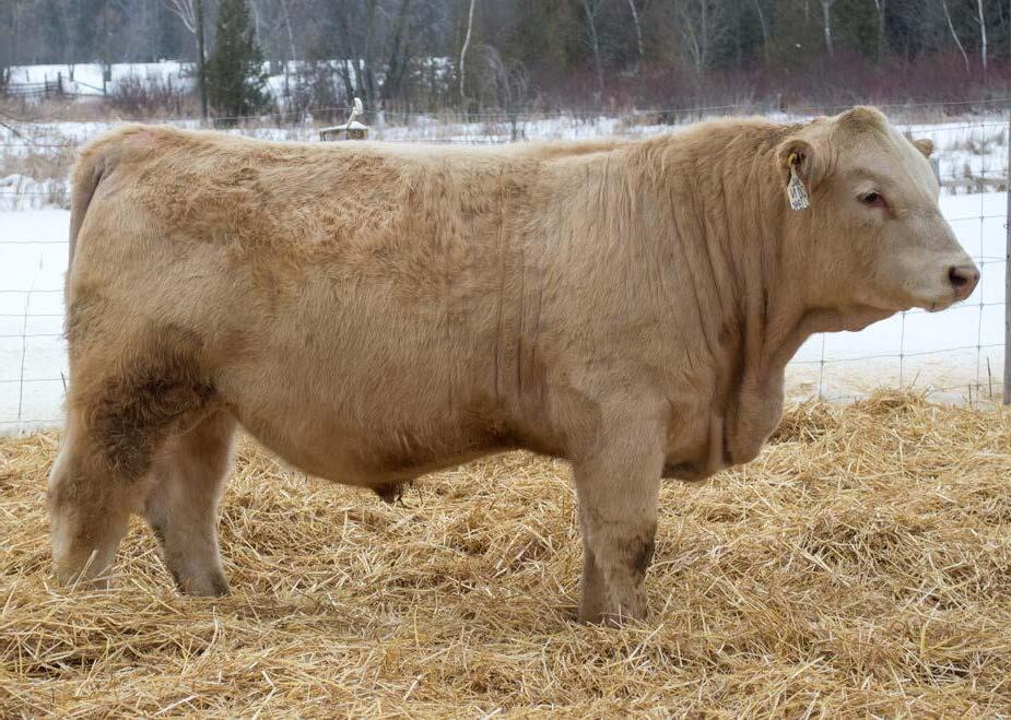 This stud is good and he knows it. Perfect skull, smooth through his shoulder, robust in his rib shape, long bodied and puts all that power to the ground on big feet. His dam 200H is one of the hardest working young cows here. A full sibling to 12N was a feature commercial bred heifer last fall in Hanover that brought $10,000 to Haddie Simmentals.