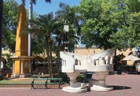 1. 綺麗に整頓された、お洒落なモンテホ通り。左手に見 えるのは、ユカタン人類学博物館となっているカントン宮 殿(※マヤ関連のコレクションは、右ページでご紹介のマ ヤ博物館に移動済み) 2. 祖国の記念碑は、モニュメント 全周に施された手彫り彫刻がお見事