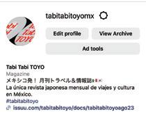 Tabi Tabi TOYO は在墨日系旅行代理店・ビアヘス東洋メヒカーノの出 版部門・東洋マーケティングが、在墨・旅行中の皆様にむけてメキシコ の魅力を紹介する月刊無料旅行情報誌です。日本国大使館や日墨会館、 企業やレストランなど日系各店、ホテルを中心に無料配布しています。