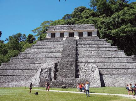 こからパカル王の墳墓が発見され、最上 部の壁一面にマヤの碑文が刻まれてい たことから、その名がついた。