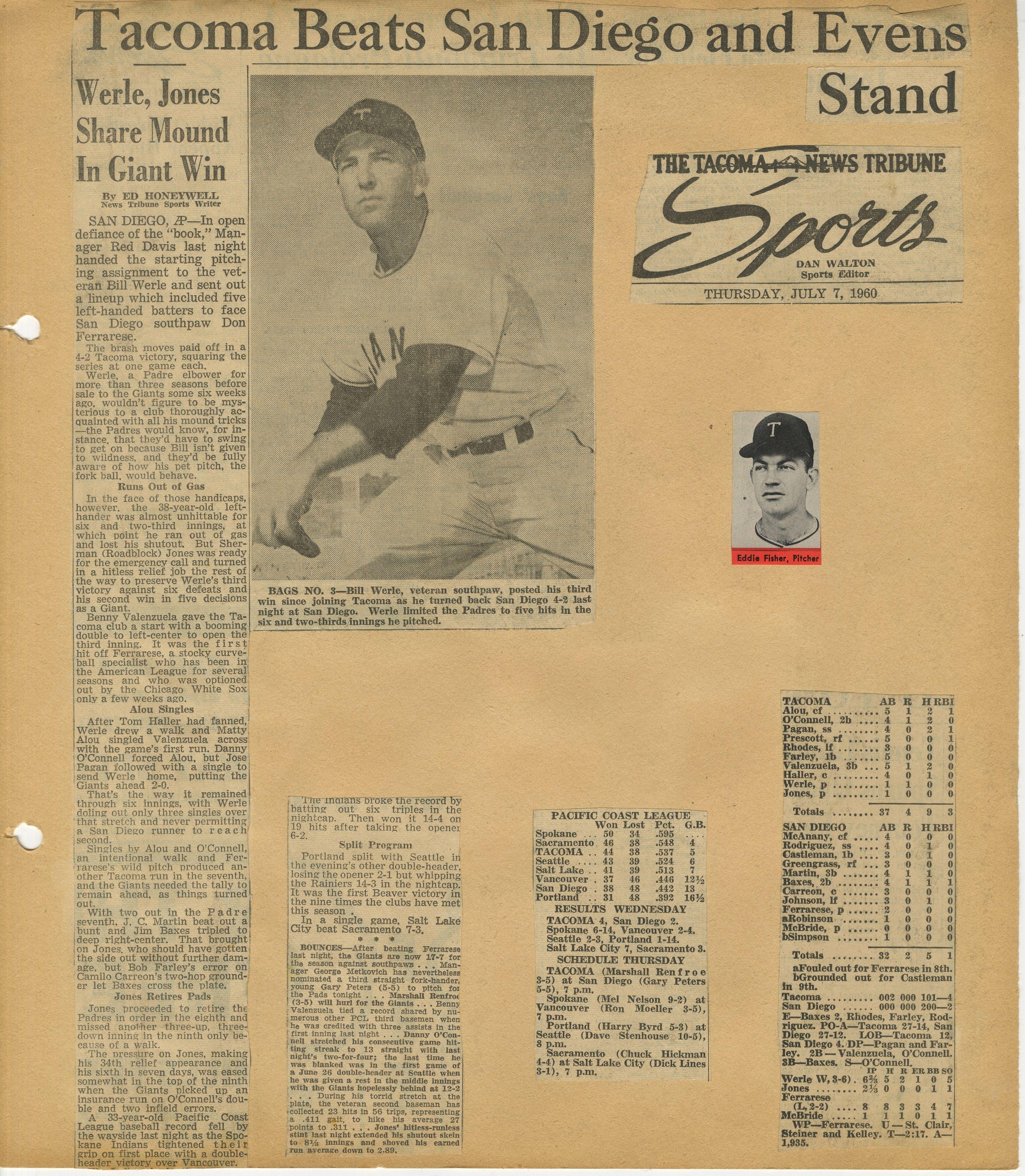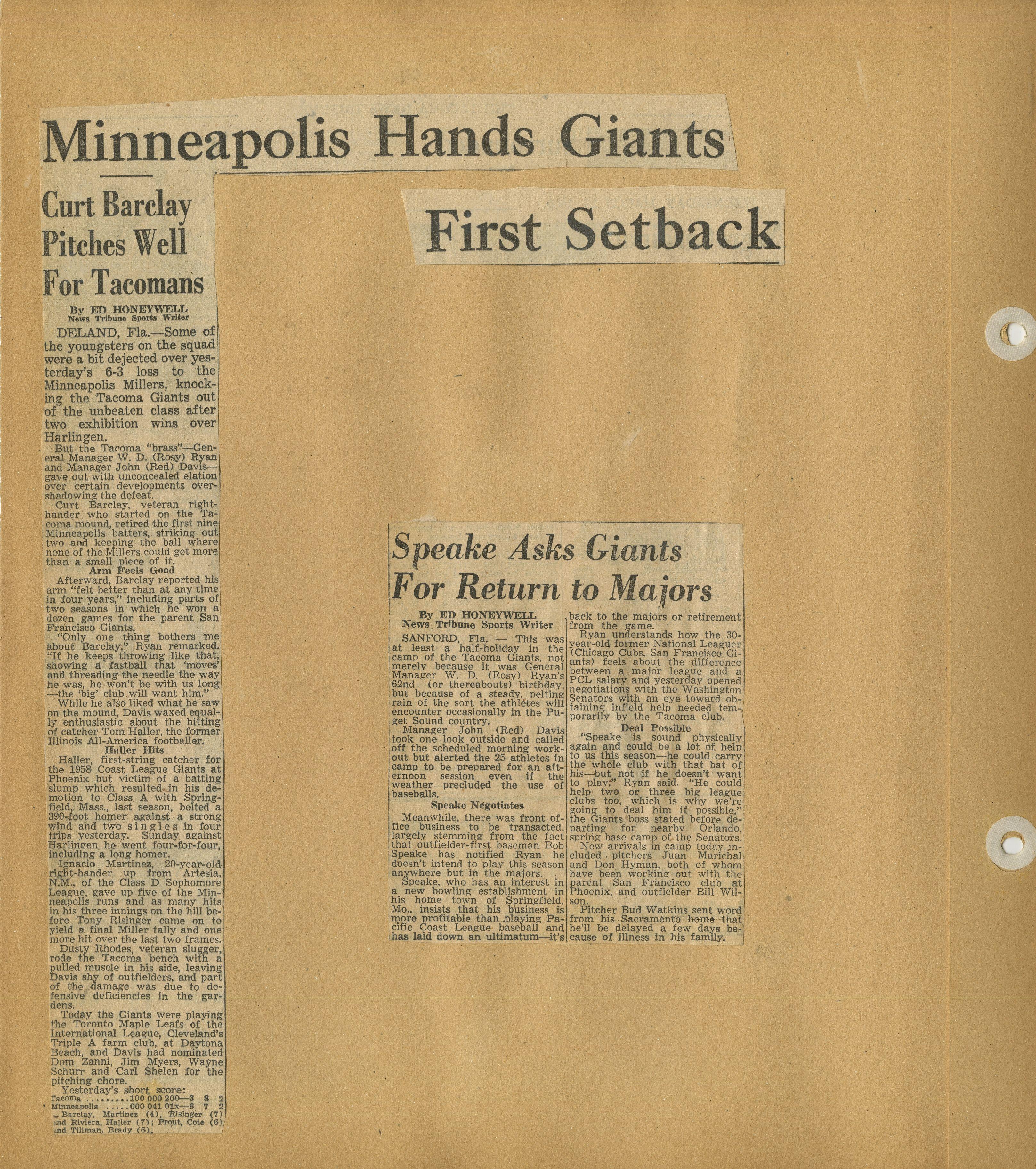 1960 Tacoma Giants baseball scrapbook