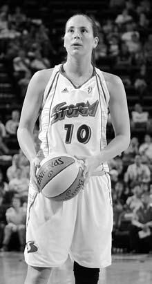 A three-time All-WNBA First Team pick, the 5-9 Bird has been one of the vanguards of a new breed of female point guards who are as dangerous scoring the basketball as they are passing it. During the 2003 season, Bird set a WNBA record with seven point-assist double-doubles. Despite suffering a broken nose early in the Storm’s 2004 playoff run, Bird continued to star with a protective facemask, handing out a WNBA Playoffs record 14 assists in the Storm’s Game 3 victory over Sacramento in the Western Conference Finals.