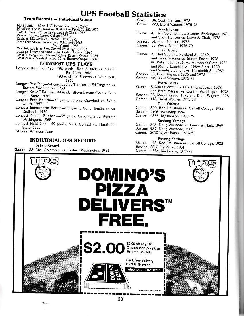 Ii is obvious that the 1985 UPS letball t€ah will be ia.ed oith a nunb€r ol chaUe.ses but on air ol optimism and dedi.ation to lhe 96l hotivates the LIPS prcsnm. The UPS slogan'Coming Alive tn '85," th€ goalA Colunbia Fmtball L€ague Chanpionship