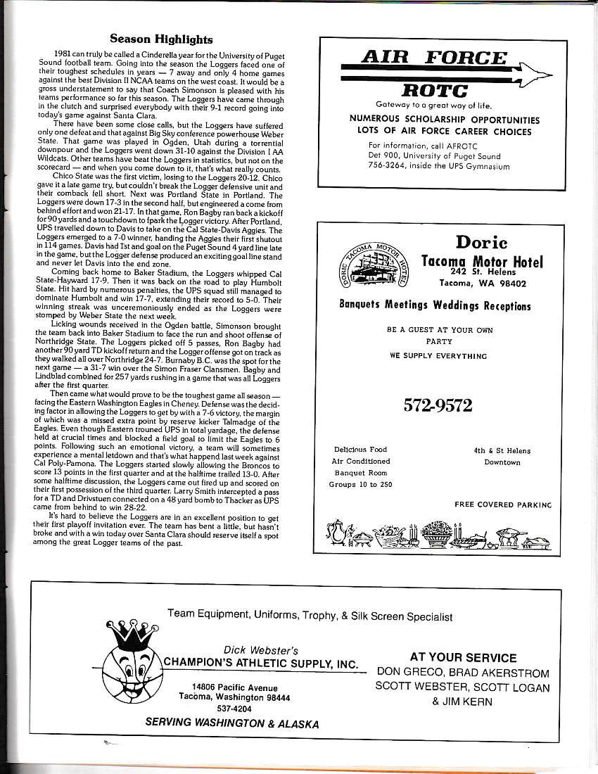The 1981-82 lootbaLl season at the Unive6jty or Puger Sound aillbe acom. parariv?Ly bielone witlonly lour hom2