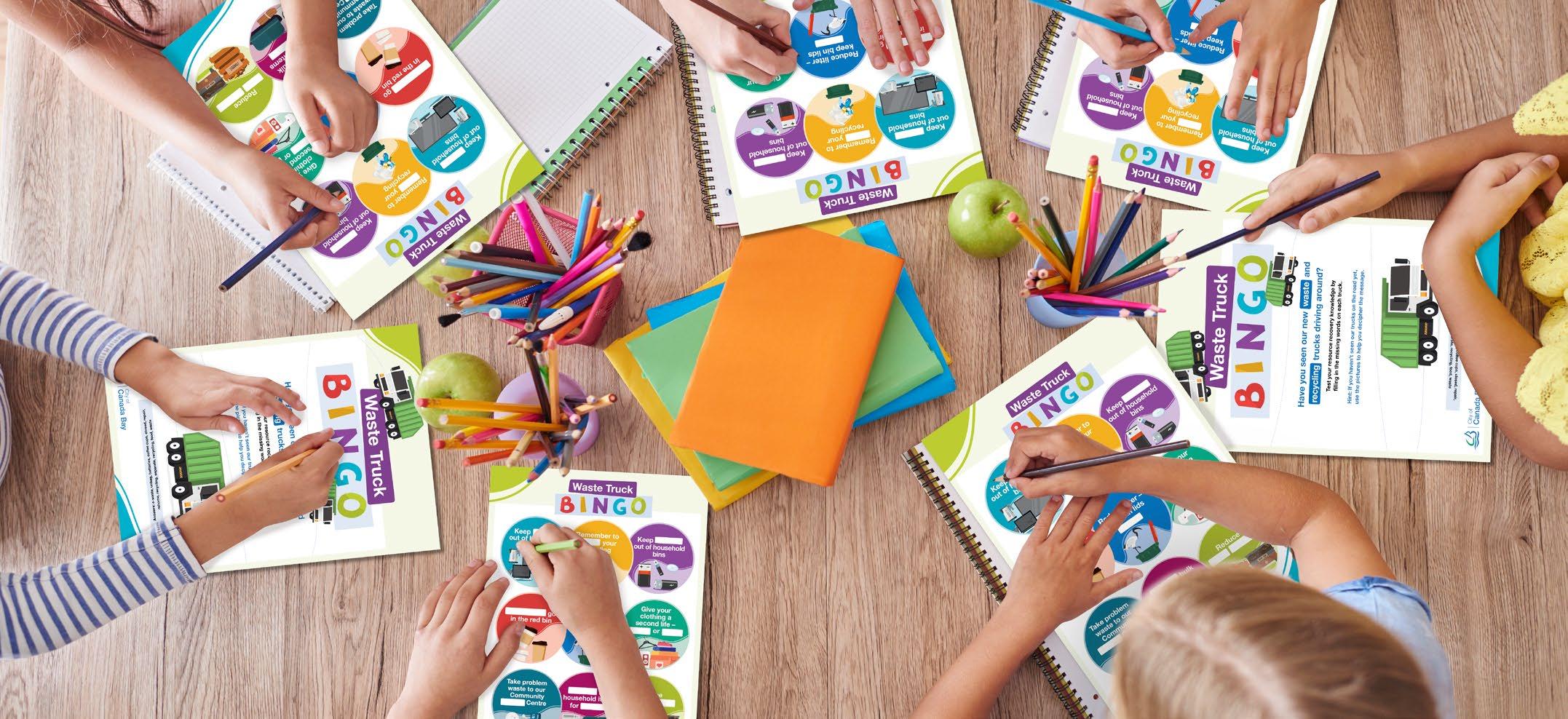 The Waste Truck Bingo activity cards prompts student to participate by filling in the missing words from each waste truck key message. This interactive approach not only tests students’ resource recovery knowledge but transforms the learning process into an exciting game!